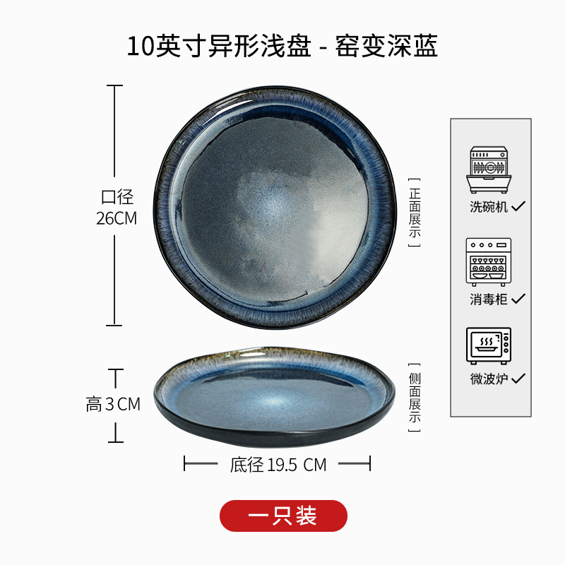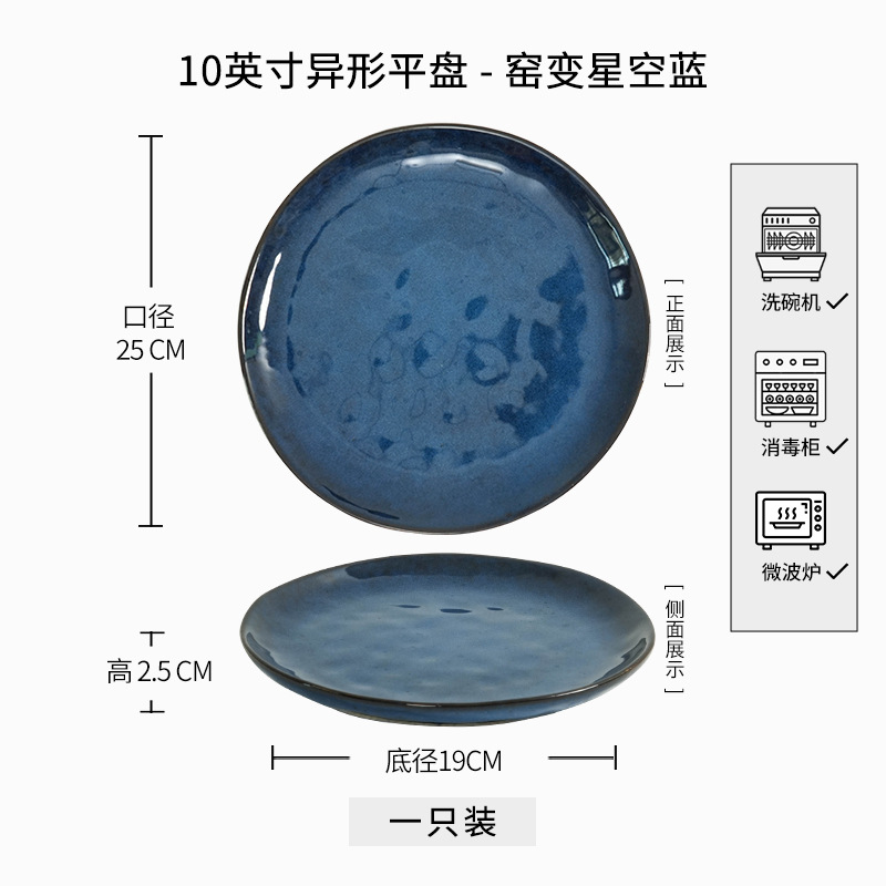 • D1D- 10inch 특수 모양의 얕은 판 - 가마가 진한 파란색으로 변합니다.