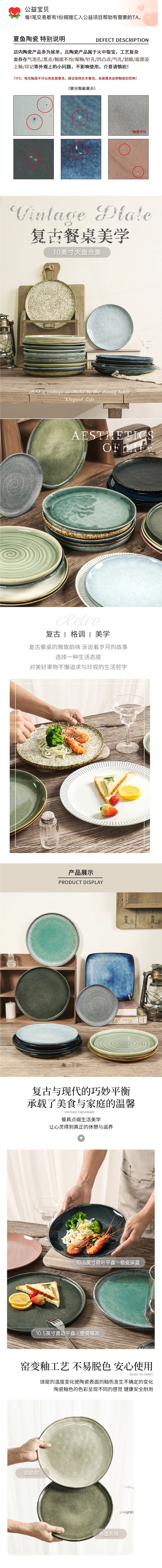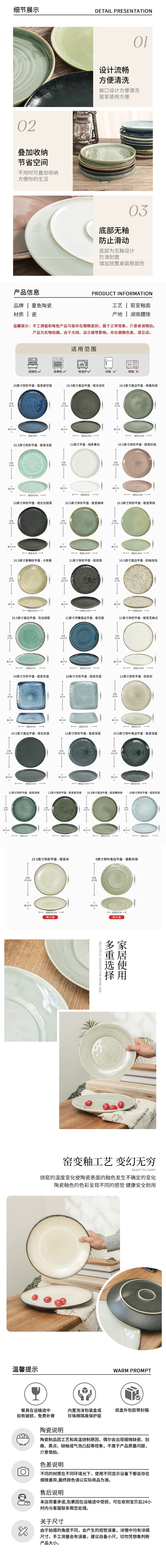 • 10.5inch 특수 모양의 평판 - 가마에서 진한 파란색으로 변합니다.