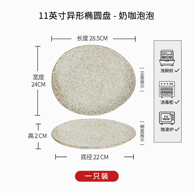 • 11inch 특별한 모양의 타원형 접시 - 밀크 커피 버블