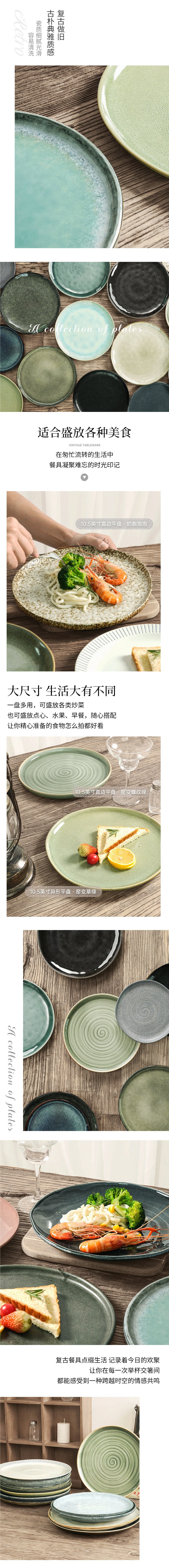 세라믹 대형 플레이트 가정용 높은 색상 가치 광장 파스타 창조적 인 플랫 플레이트 복고풍 컬러 서양식 스테이크 플레이트스토어 가기