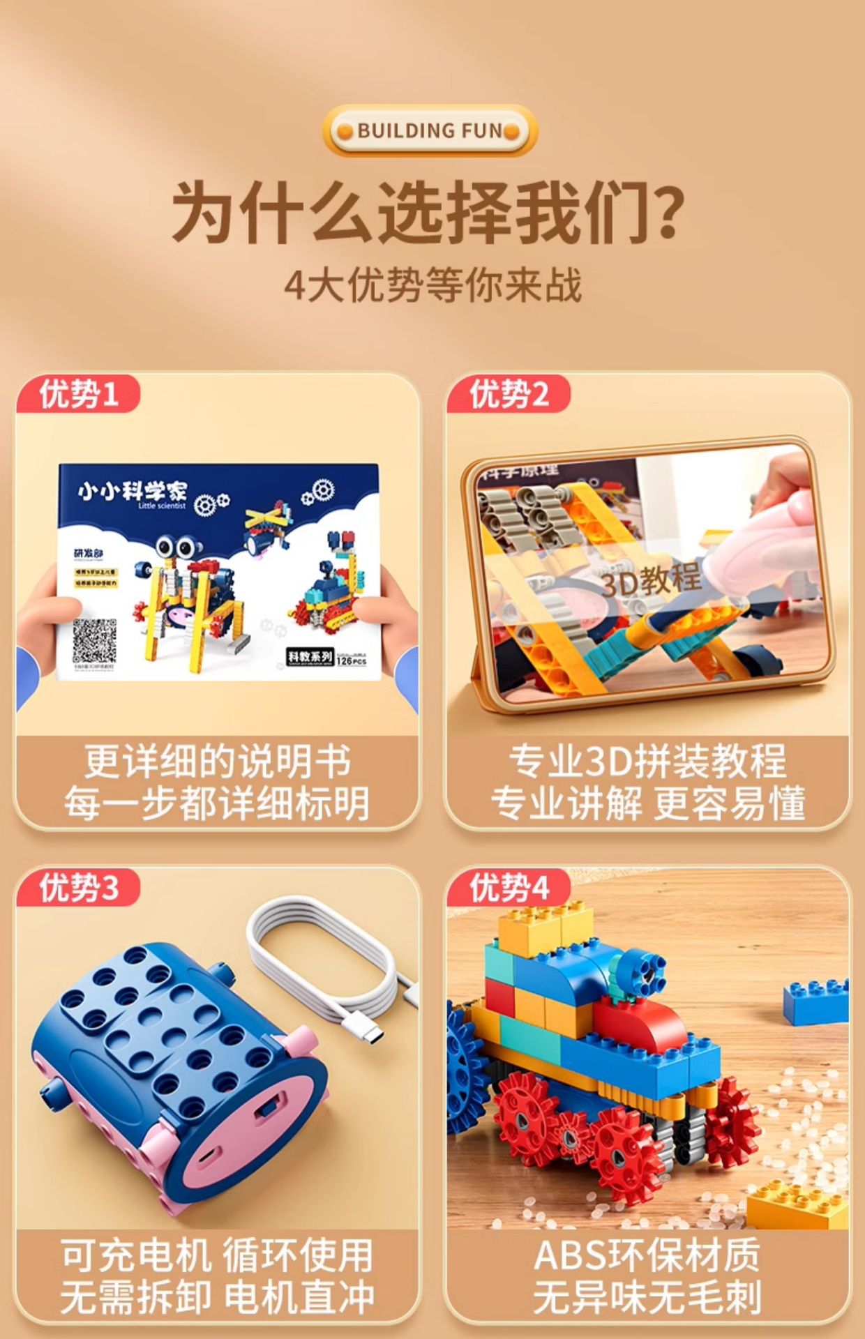 대형 블록 조립식 어린이 전자 기계 장난감 교육용 과학 기어 장난감스토어 가기