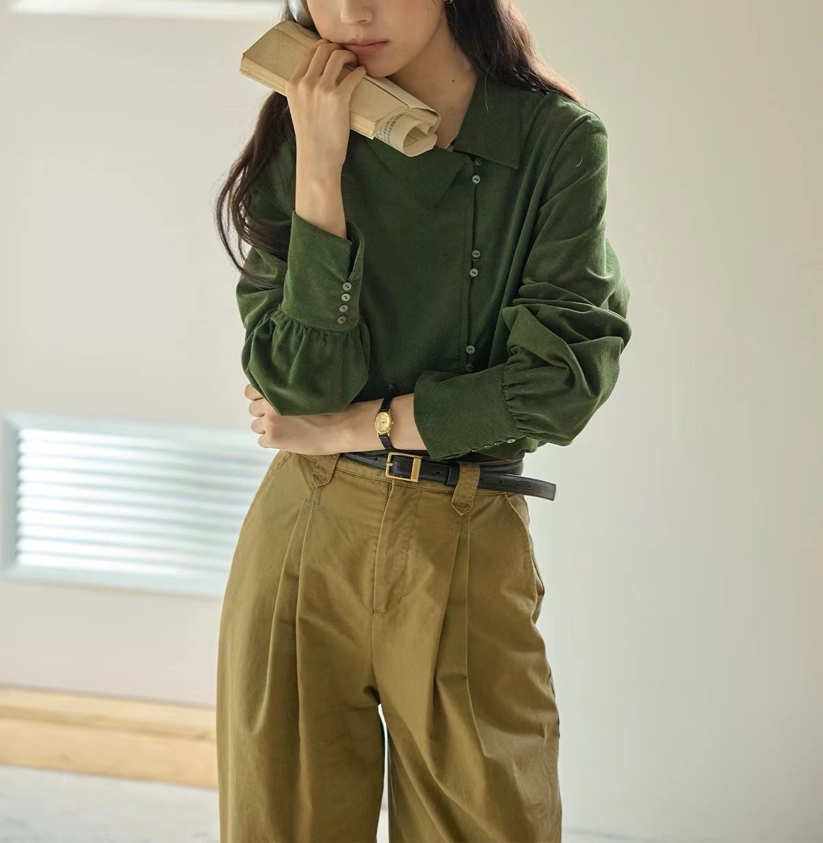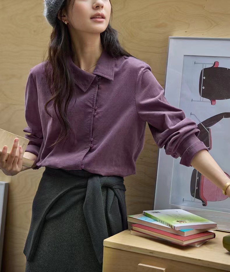 [신제품 10% 할인] 가을 여성을위한 솔리트 프랑스 복고풍 코듀로이 디자인 불규칙한 셔츠스토어 가기