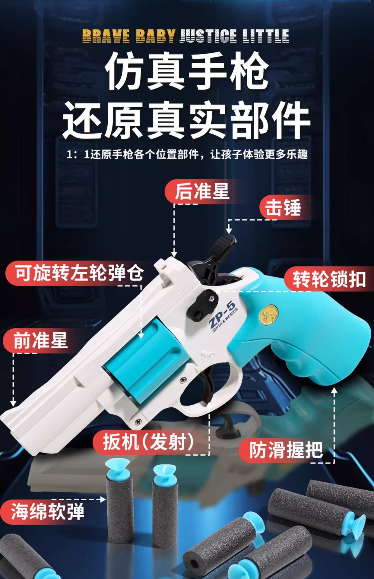 • [신모델-블루] ZP5 리볼버 [소프트탄 12발 포함]