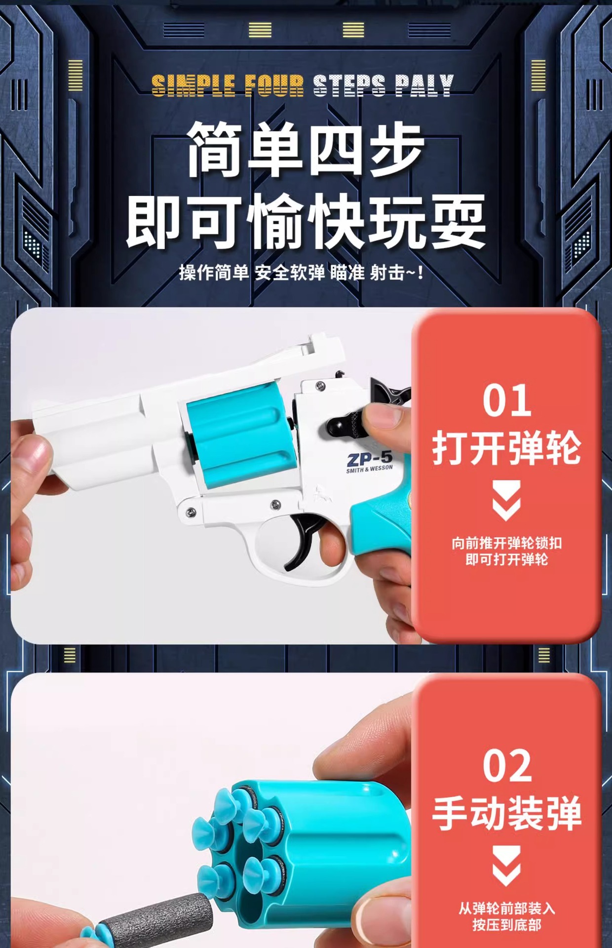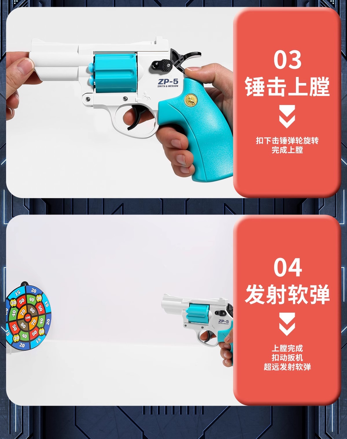 • [신모델-블루] ZP5 리볼버 [소프트탄 12발 + 타겟 + 나노글루 포함]