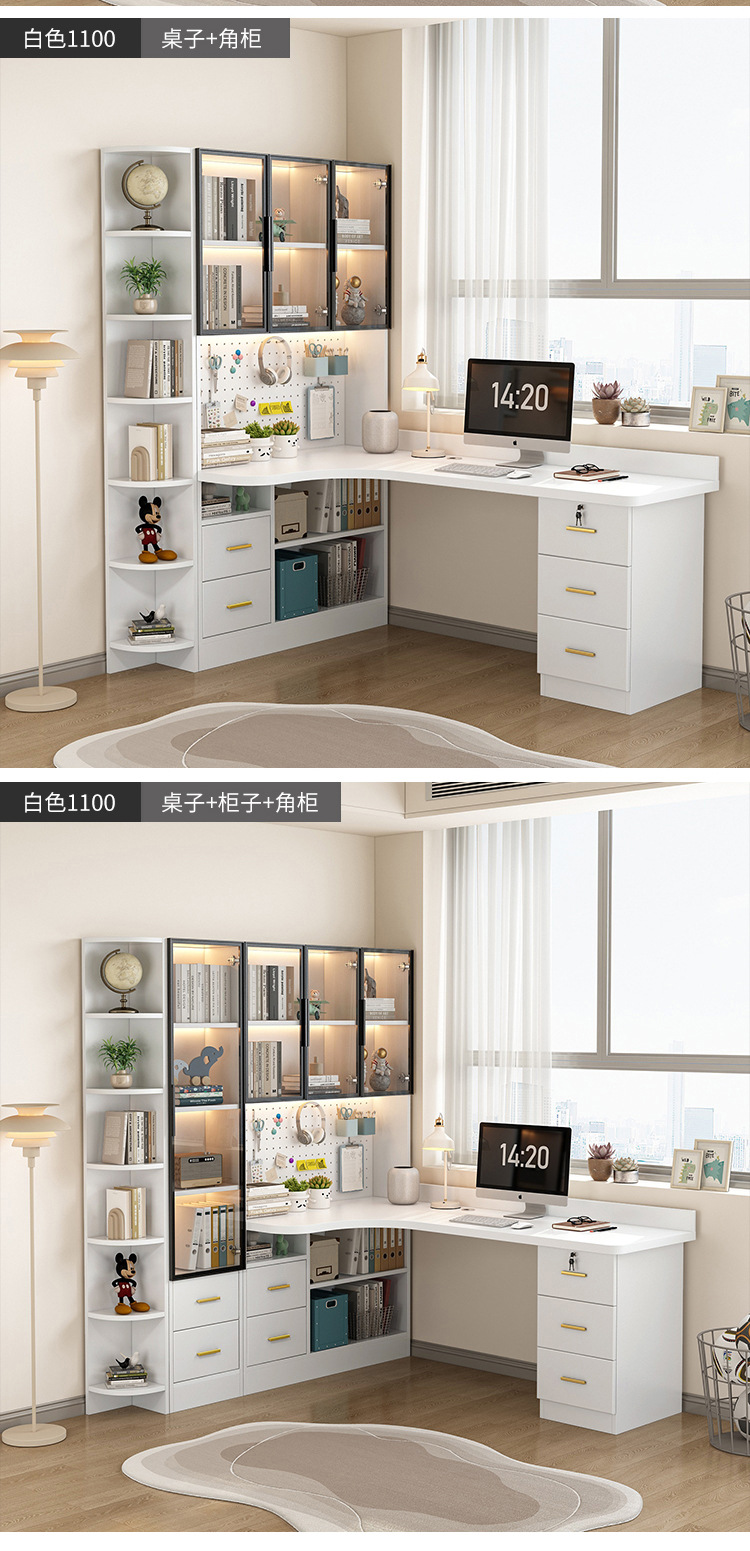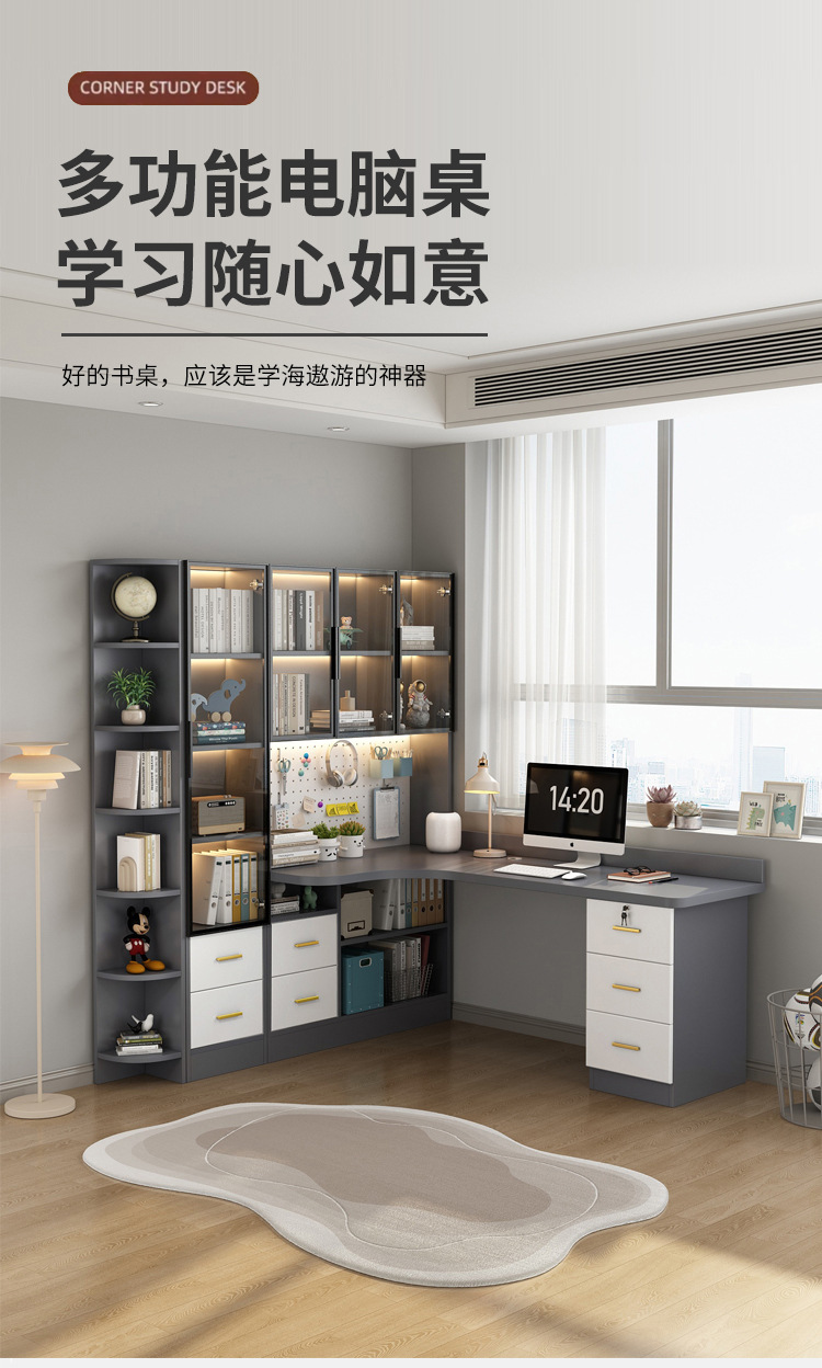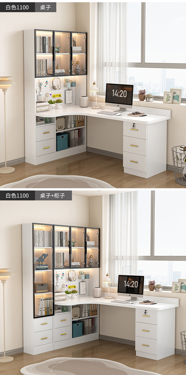단단한 나무 코너 침실 책상 책장 책장 조합 사무실 컴퓨터 책상 침실 홈 쓰기 간단한 학습 테이블스토어 가기