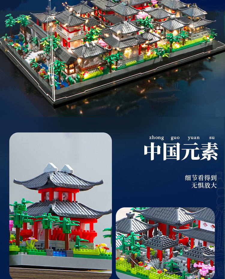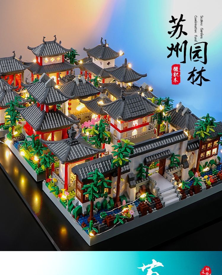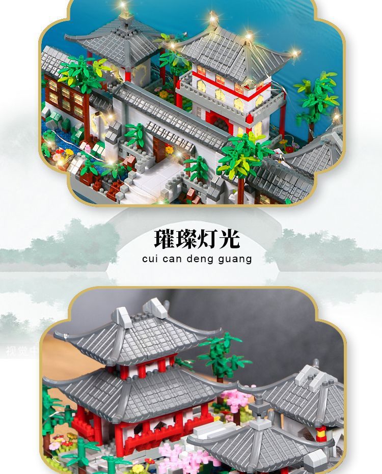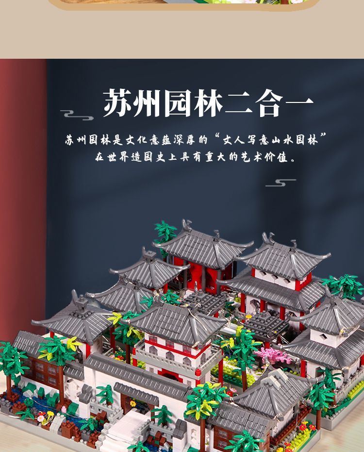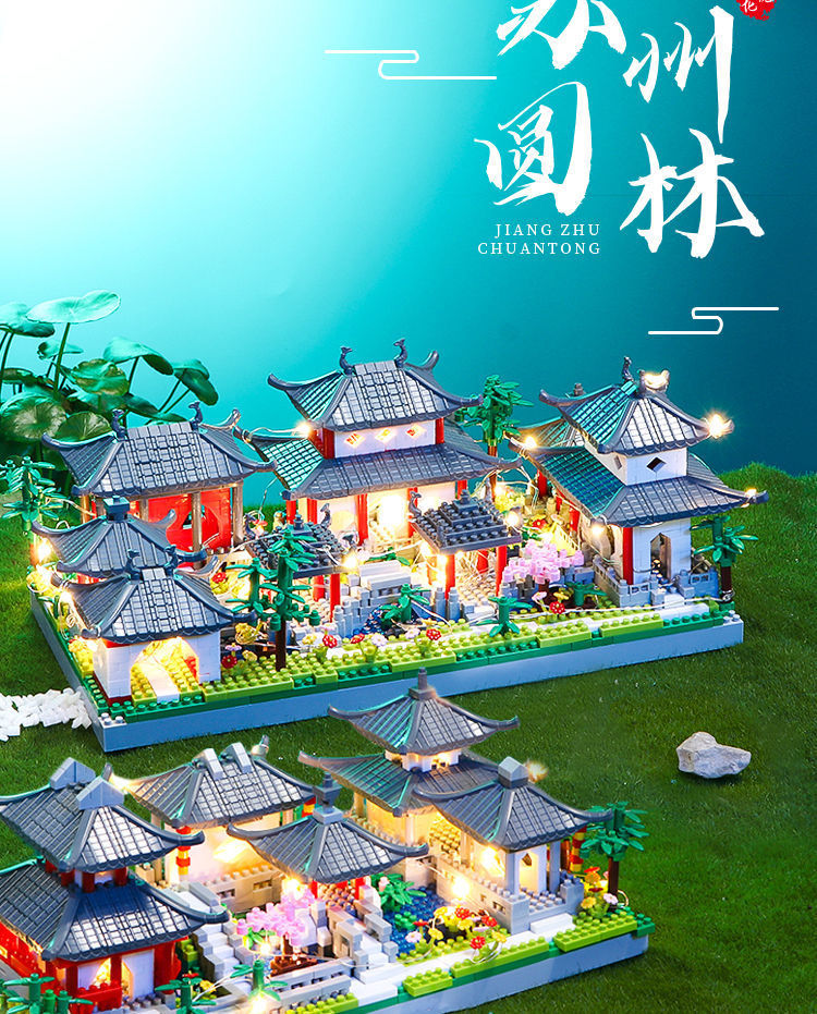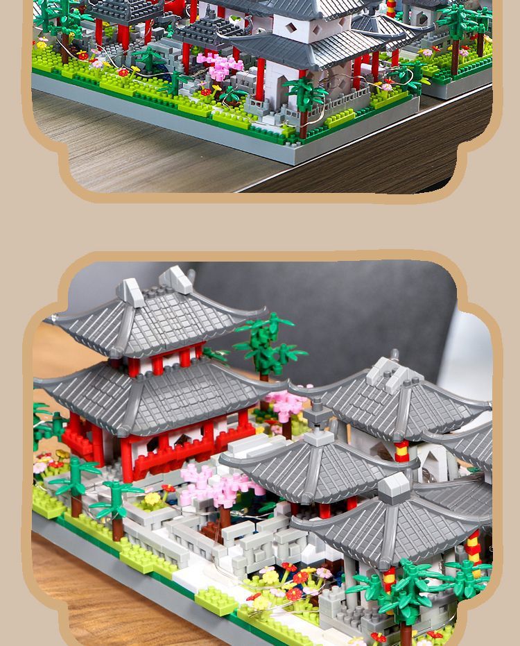 어린이 호환 작은 입자 건물 블록 소주 정원 대형 건물 금형 중국 스타일 어려움