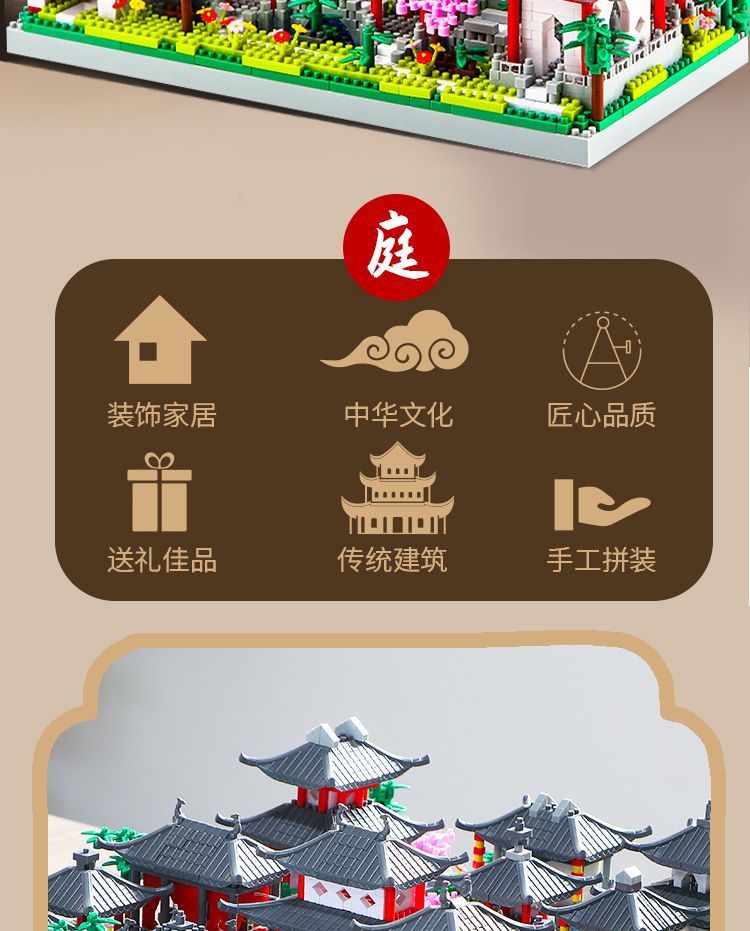어린이 호환 작은 입자 건물 블록 소주 정원 대형 건물 금형 중국 스타일 어려움스토어 가기