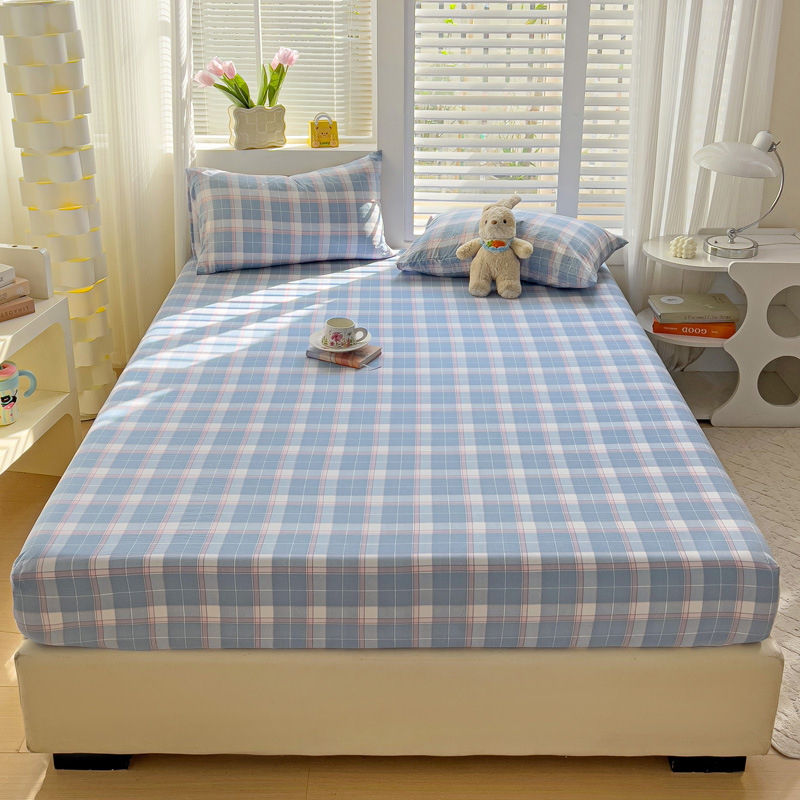 2025 새로운 스타일의 워시 코튼 싱글 피스 침대 시트 클래스 A 엄마와 아기 블루 체크 무늬 침대 시트 매트리스 보호대 Nantong Home Textiles 도매스토어 가기
