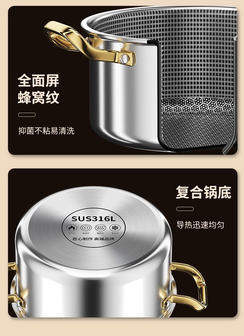 316 스테인레스 스틸 수프 냄비 스틱 냄비 죽 요리 냄비 가정용 가스 식품 등급 바이나럴 찜 및 스튜 유도 쿠커 특수 XH