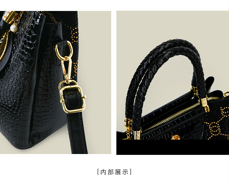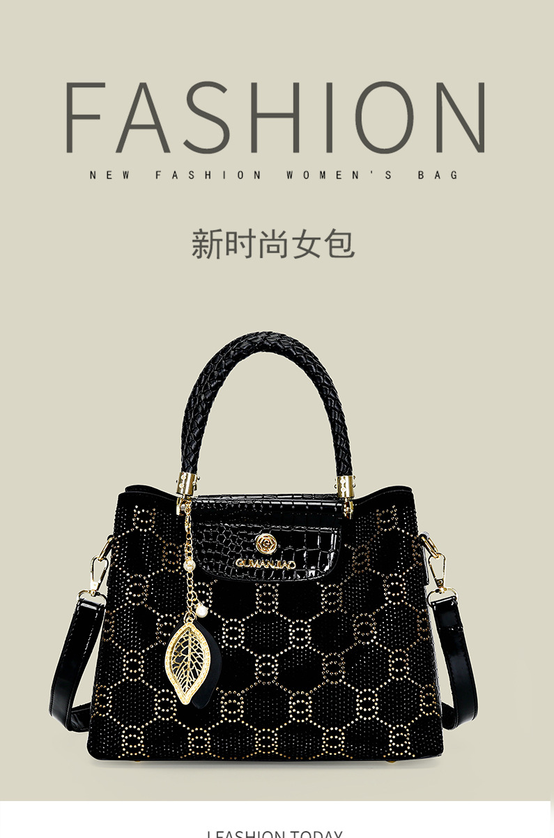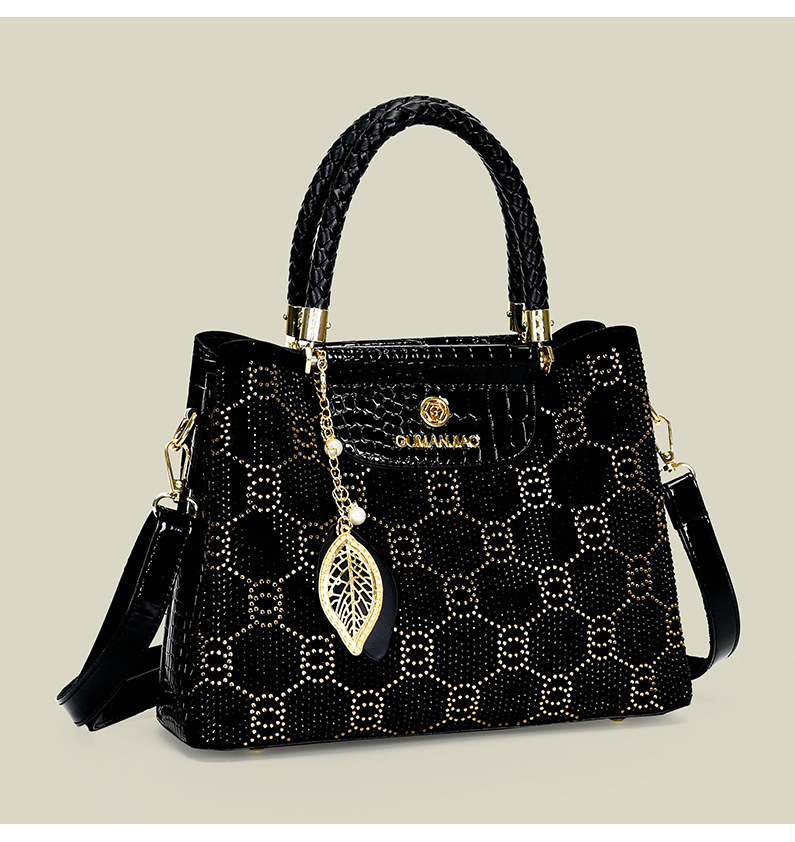 국경 간 여성 핸드백 2025 새로운 스타일 간단한 라인스톤 블랙 여성용 어깨 크로스 바디 백 대용량 라이트 럭셔리 여성용 가방스토어 가기