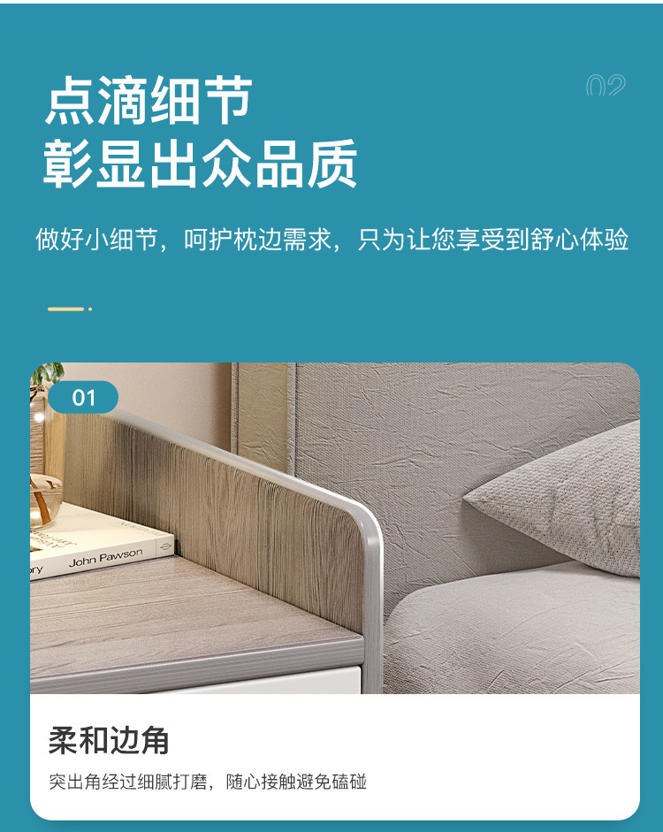 • 업그레이드된 원목 다리 - 잠금 장치가 있는 이중 서랍 수납 선반 - 모란디 그레이 ◆