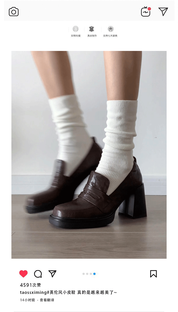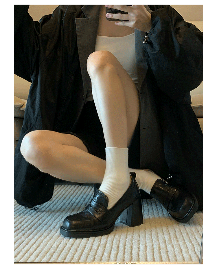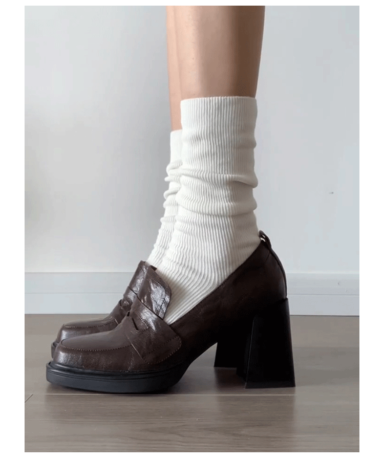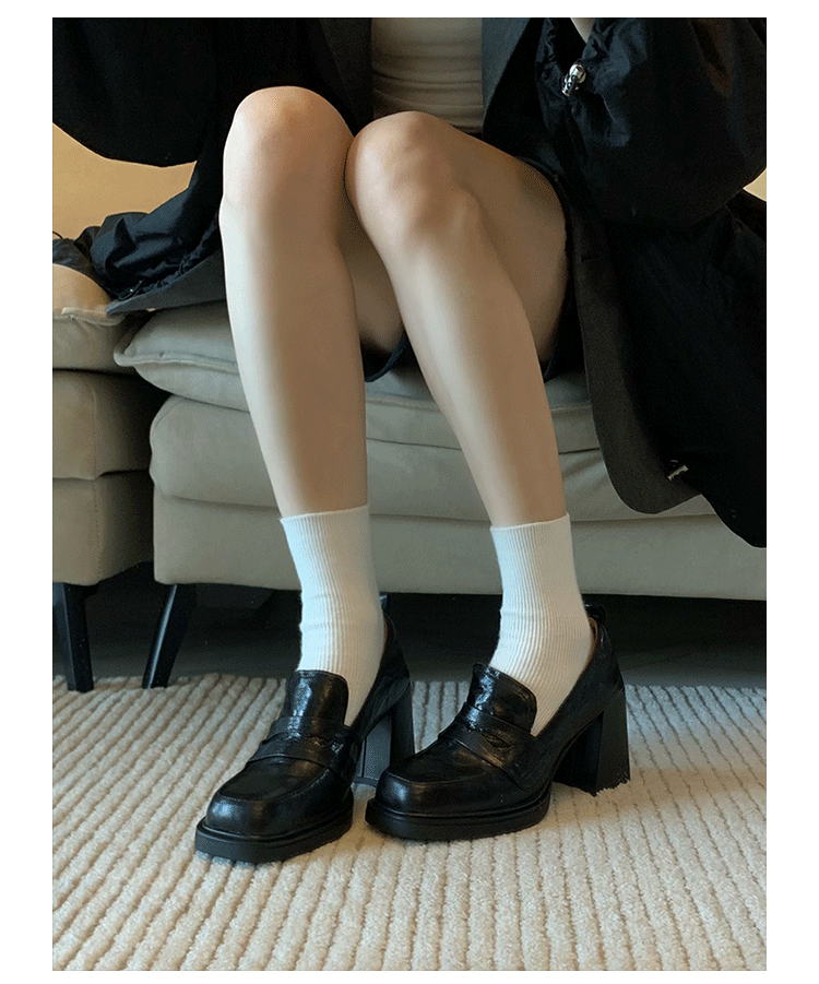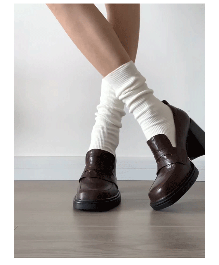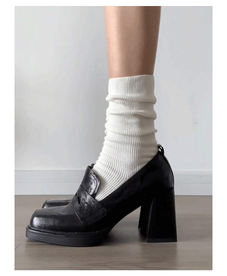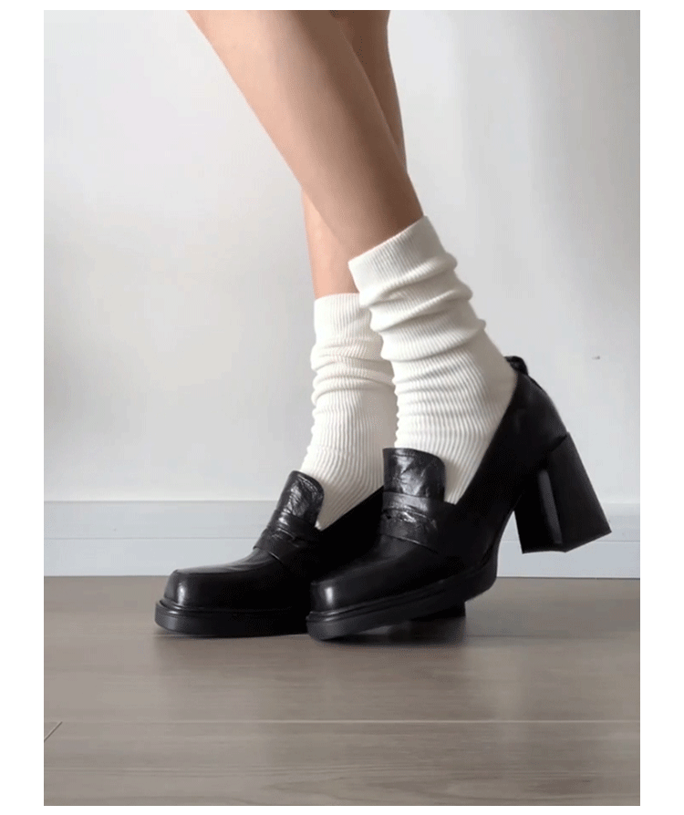 Cowhide Edition ~ Retro 영국 하이힐 가죽 신발 여성용 두꺼운 굽이 슬립 온 로퍼 스퀘어 토 칼리지 스타일 JK 여성 신발스토어 가기