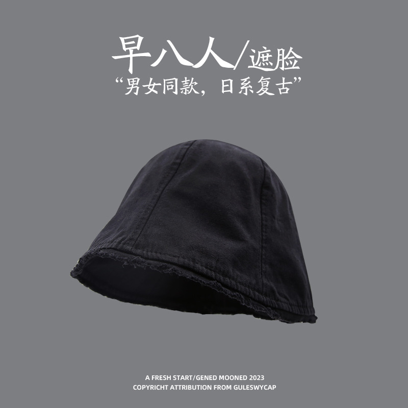 아침에 화장을 하지 않은 느낌의 분위기 있는 여성용 버킷햇, 세련되고 멋진 신상 블랙 버킷햇, 남성용 패셔너블한 버킷햇스토어 가기