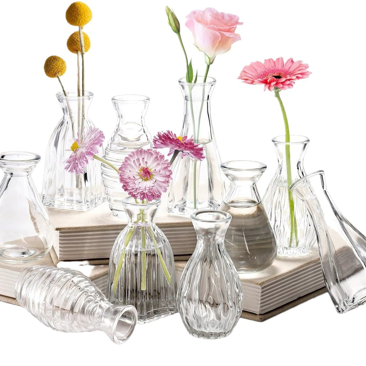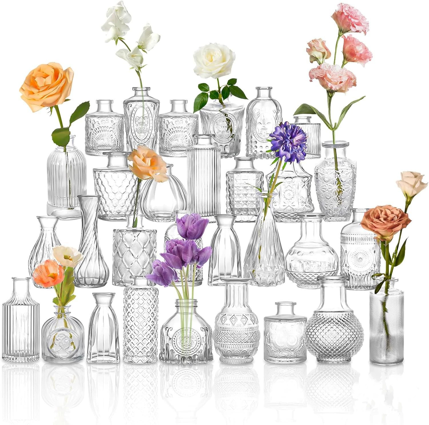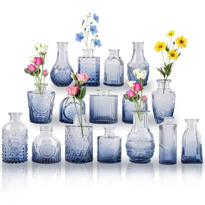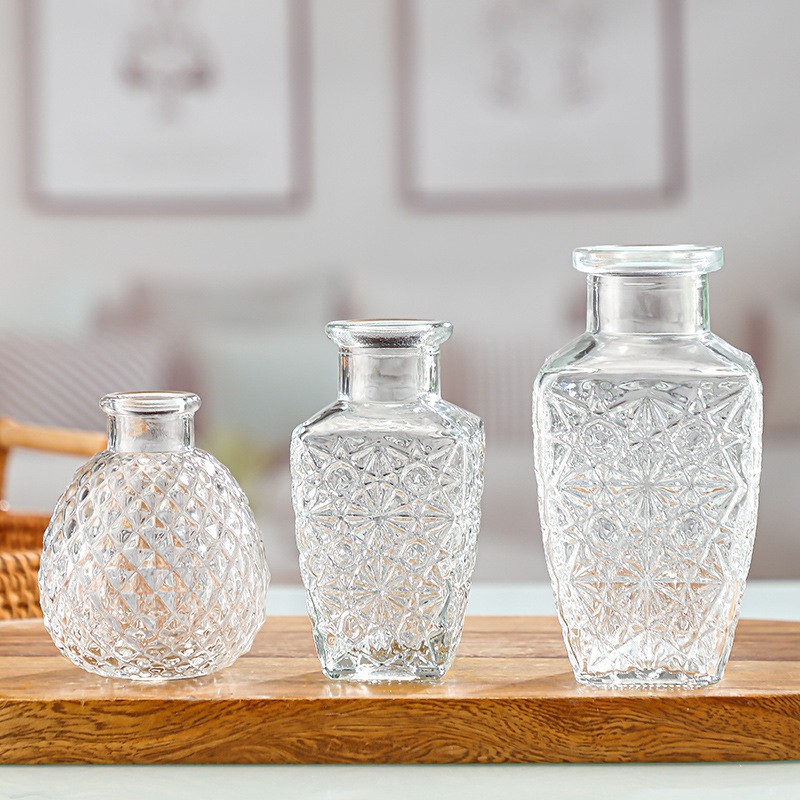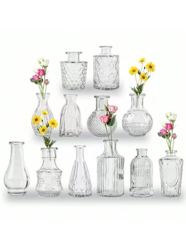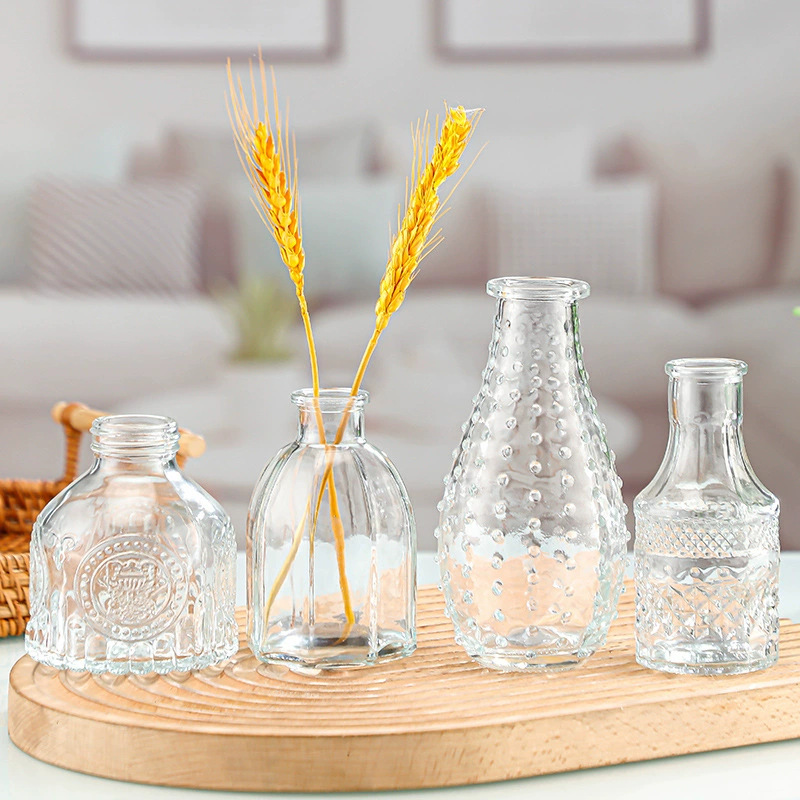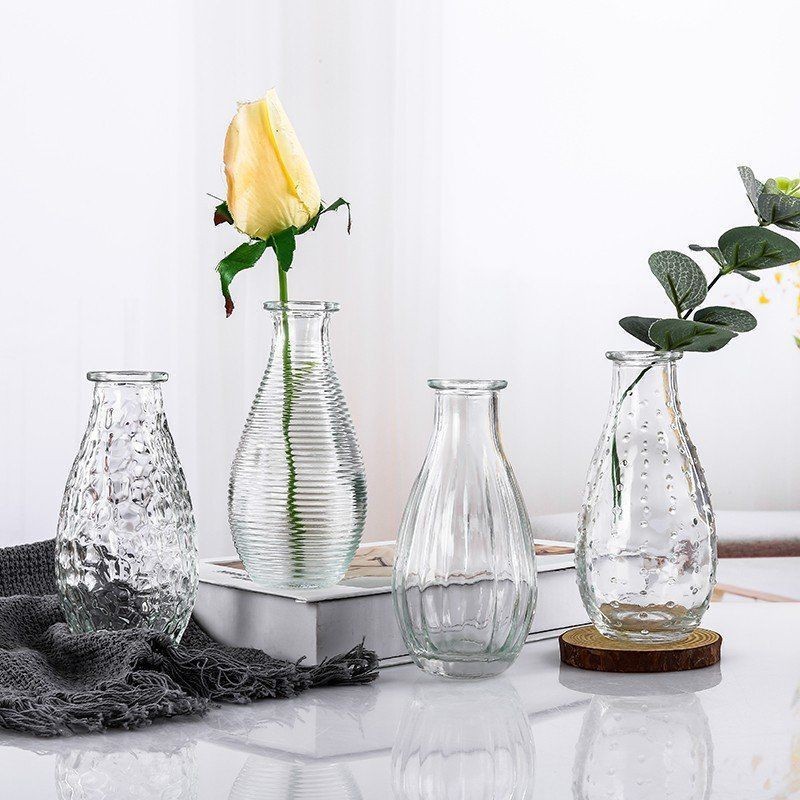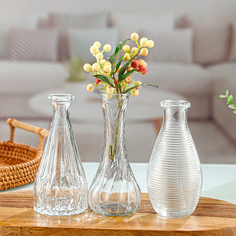 유럽의 작은 꽃병 제조 업체 도매 간단한 유리 꽃병 투명 복고풍 꽃꽂이 꽃 멀티 사이즈 포켓 꽃병