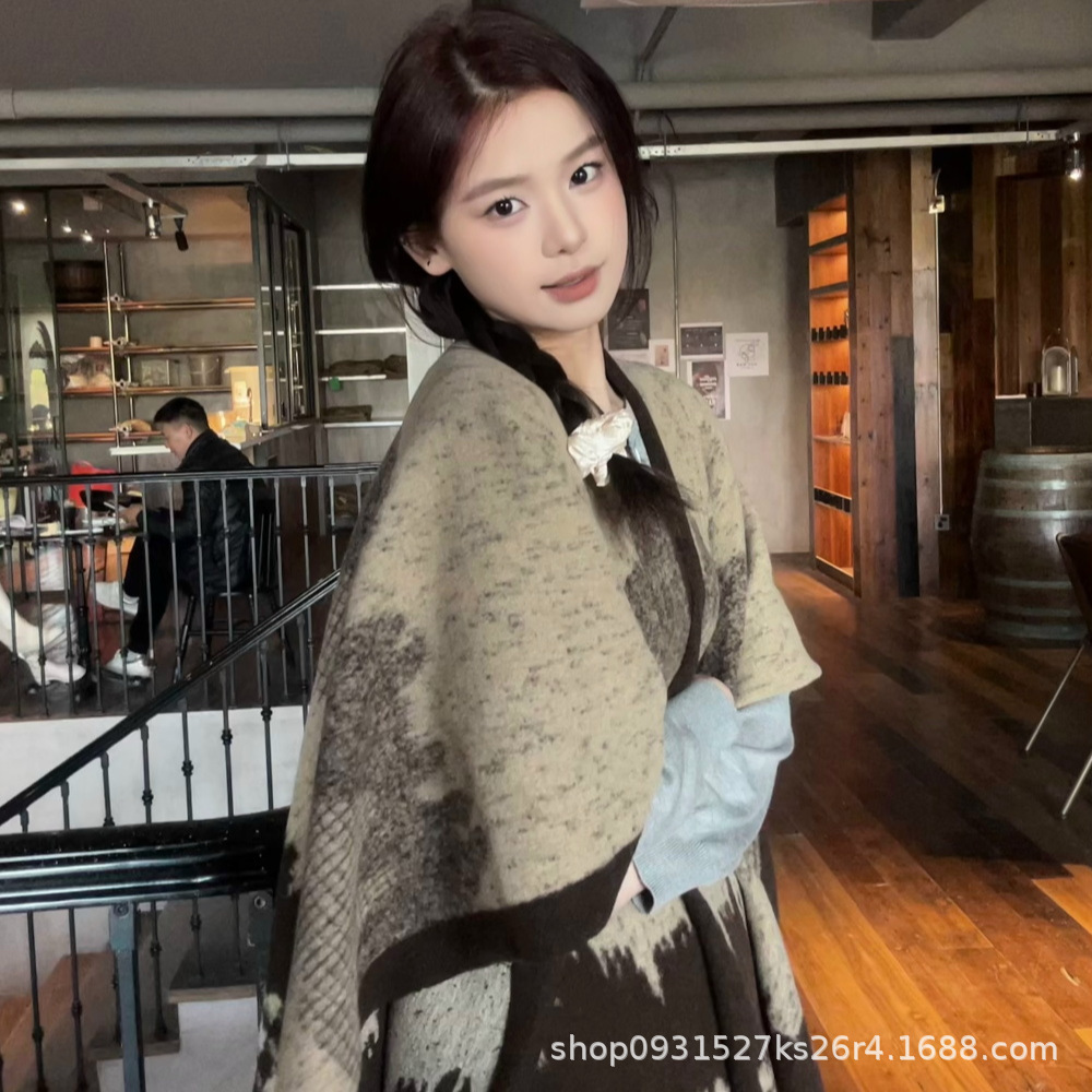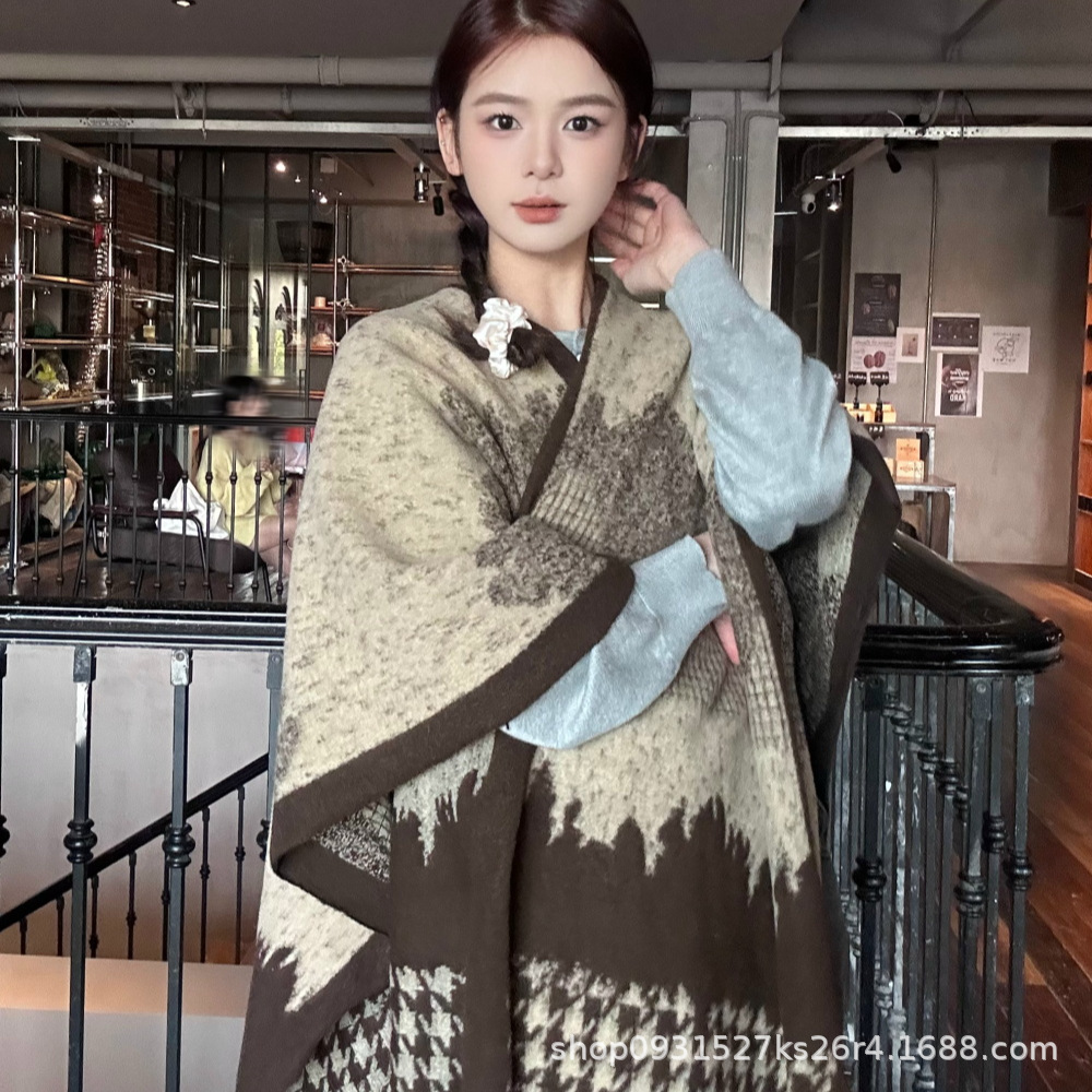 봄과 가을 따뜻한 방한 목도리 여성 한국 스타일 담요 니트 카디건 판초 레트로 술 탑스토어 가기