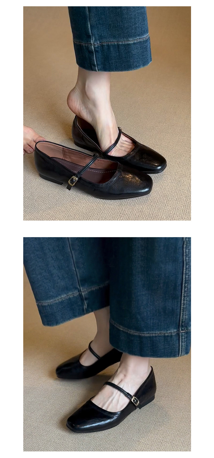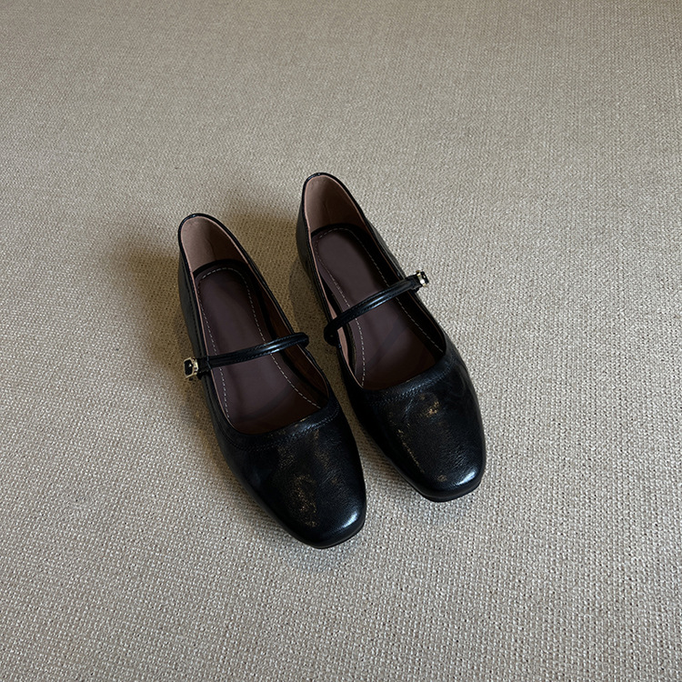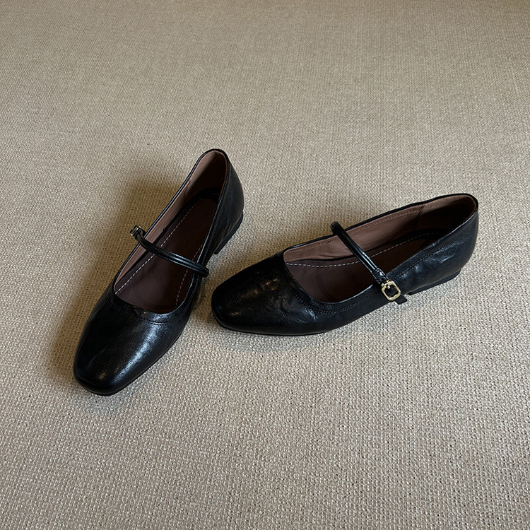 Cowhide 에디션 ~ 봄 버클 메리 제인 신발 여성 2025 새로운 통근 얕은 입 플랫 신발 여성용 작은 가죽 신발