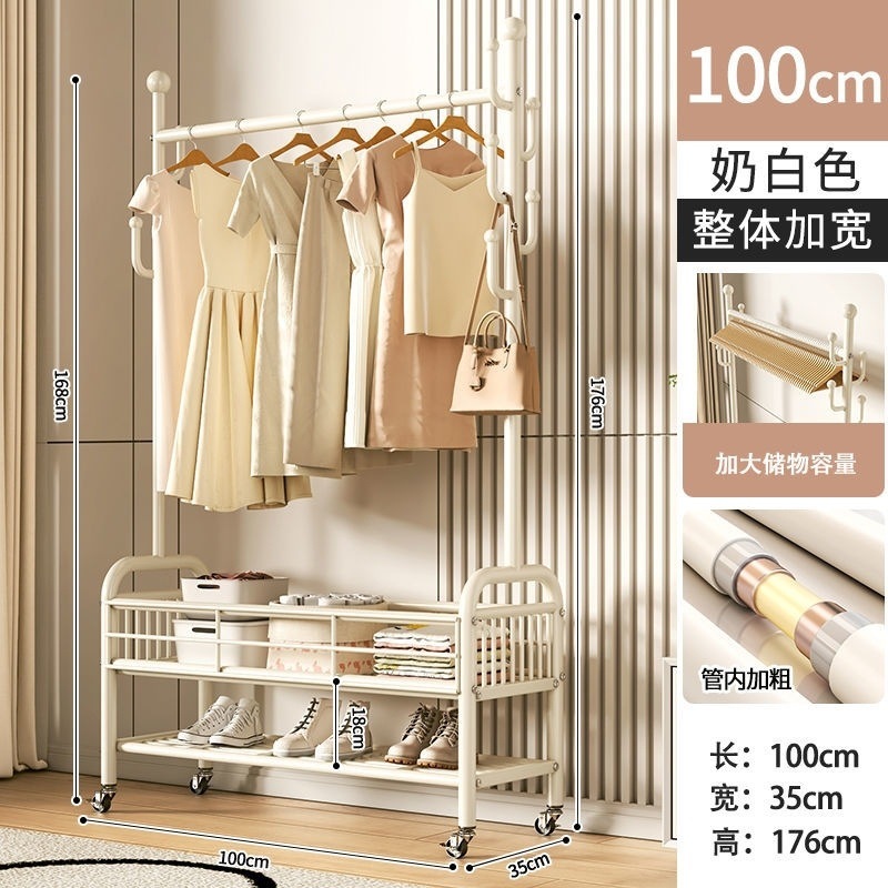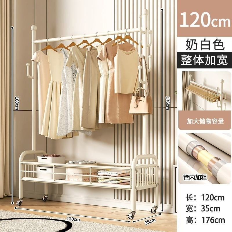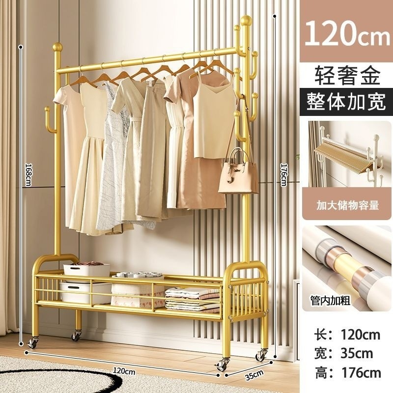침실에서 간단한 건조 랙 바닥 수직 가정용 모바일 침대 옆 옷 가방 보관 랙 코트 랙