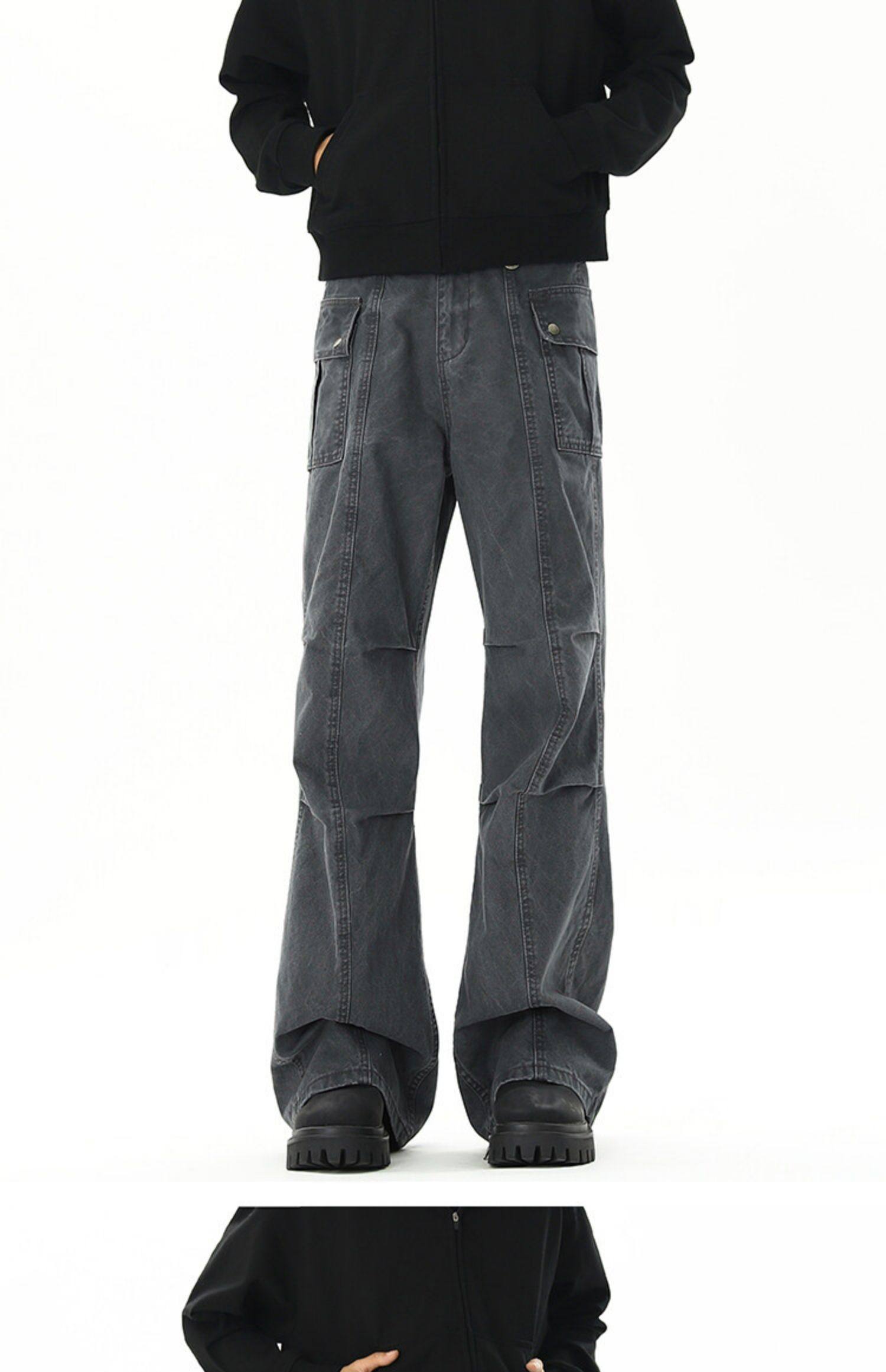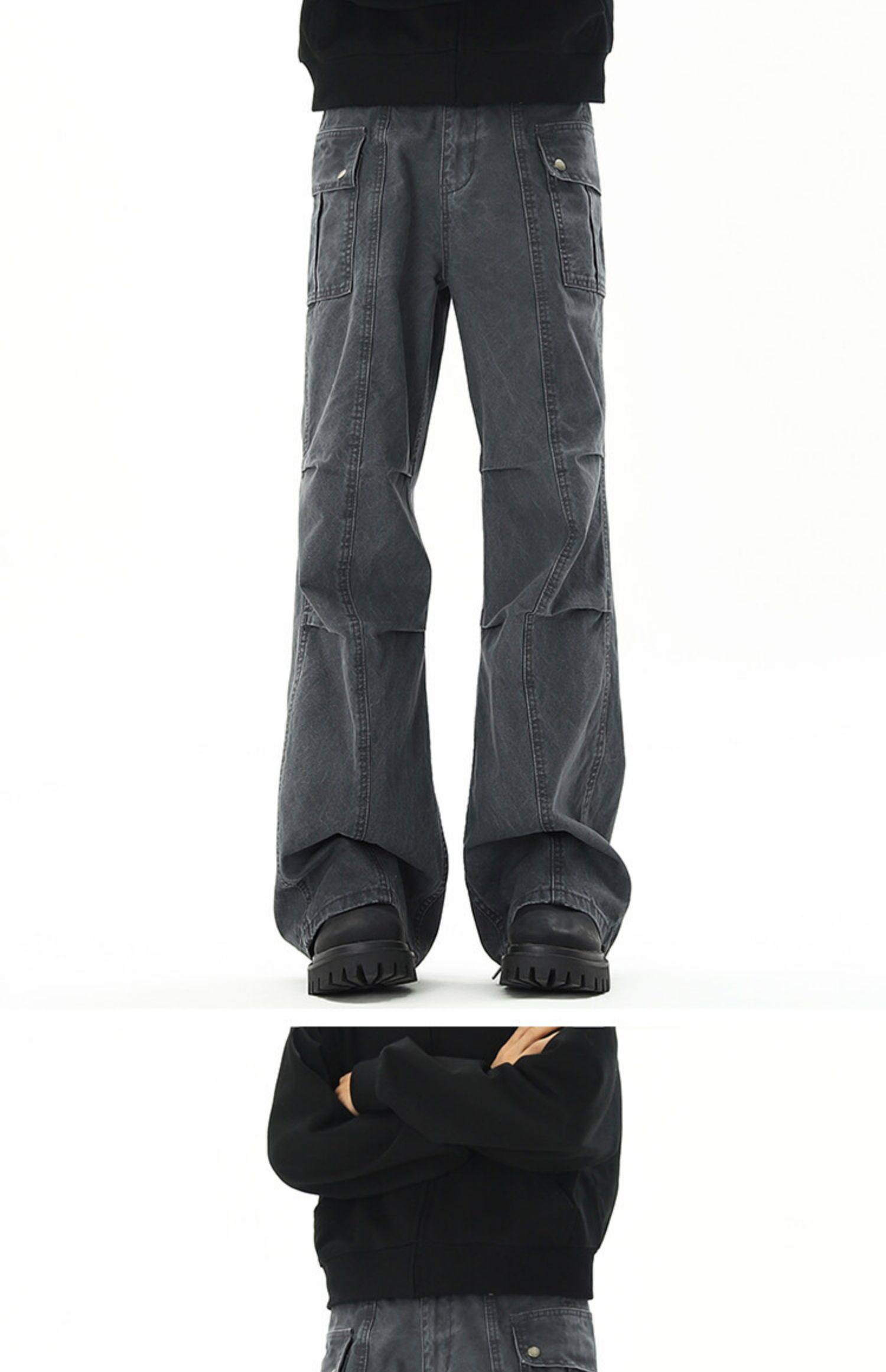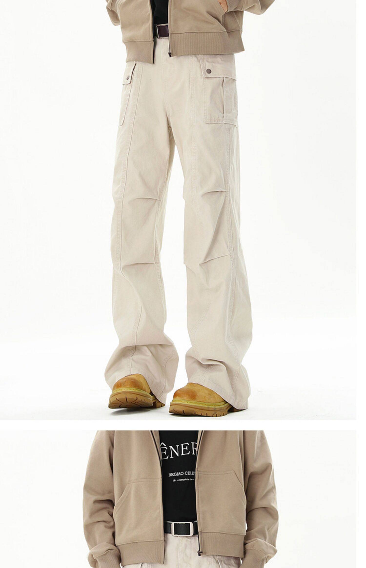 미국식 회색 마이크로 라르 바지 남성 가을과 겨울 패션 브랜드 헐렁한 스트레이트 하이 스트리트 스포츠 러피언 잘 생긴 캐주얼 바지스토어 가기