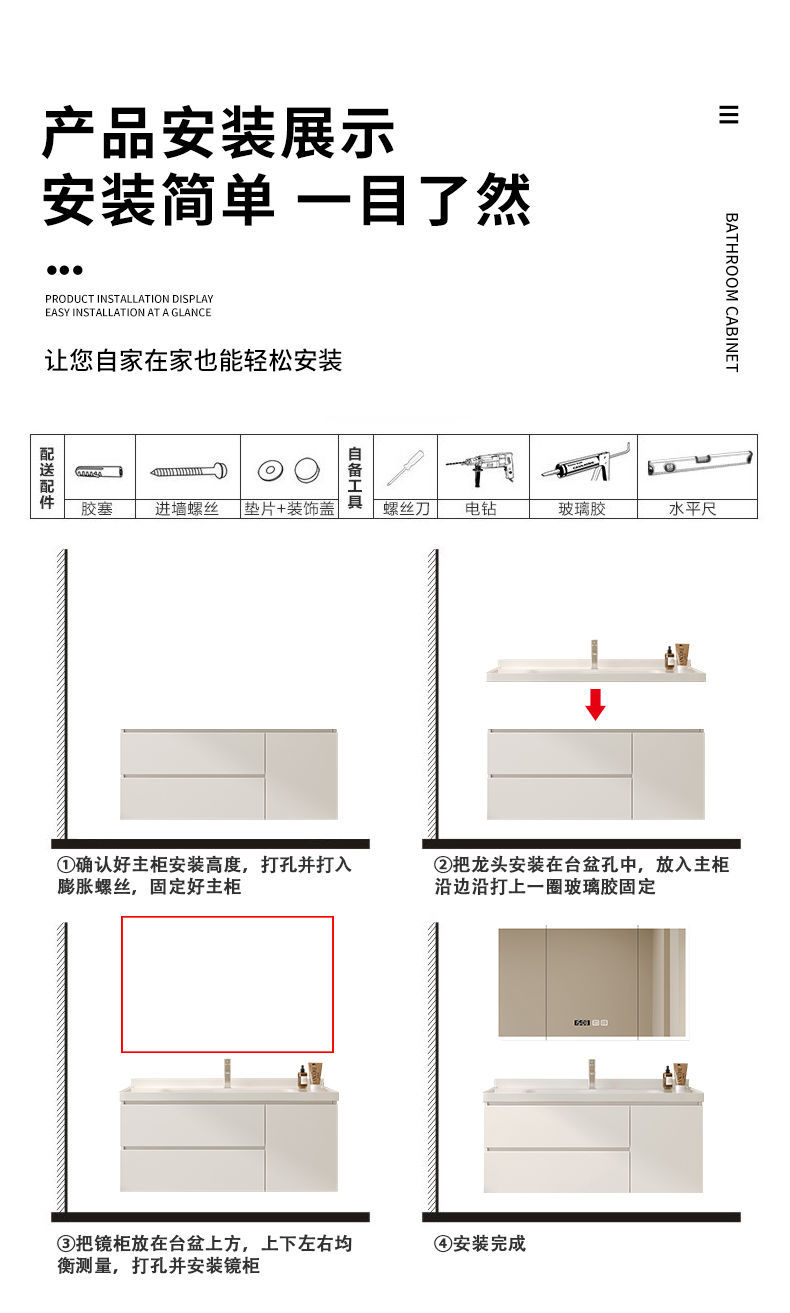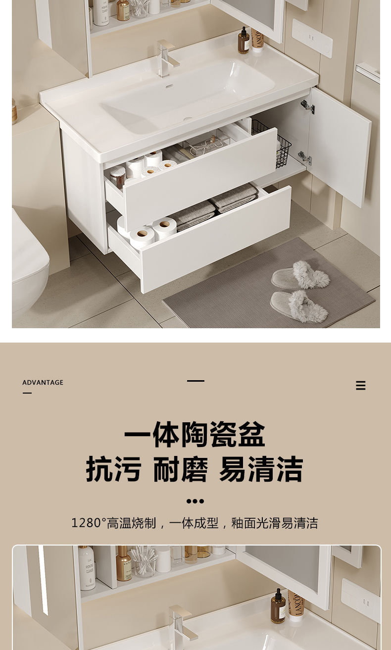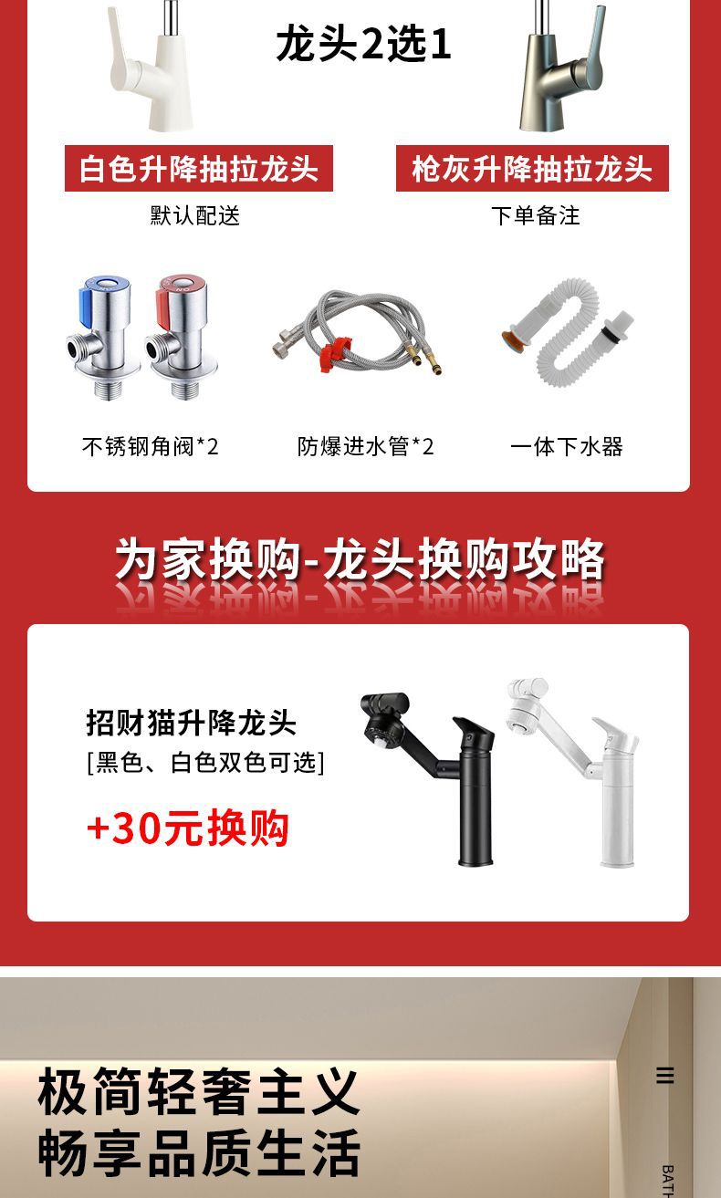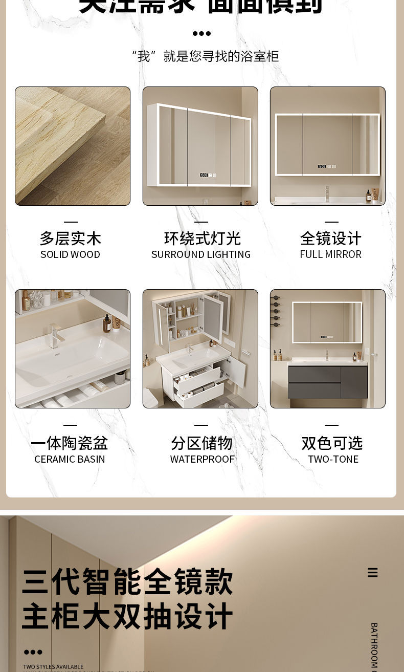 • 대형 더블 드로우 모델 + 리프팅 및 인출식 수전 + 지능형 야광 거울 캐비닛 - 100 모델