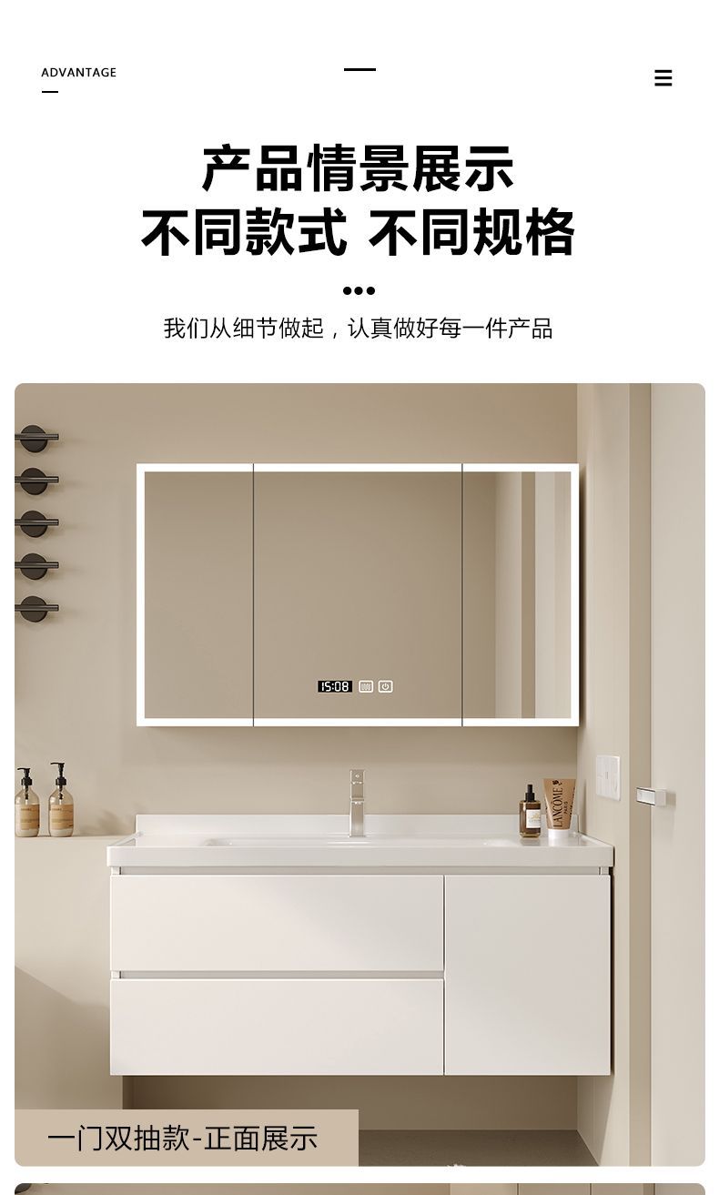 • 문 1개, 서랍 2개 + 리프팅 및 인출식 수도꼭지 + 지능형 야광 거울 캐비닛 - 80가지 스타일