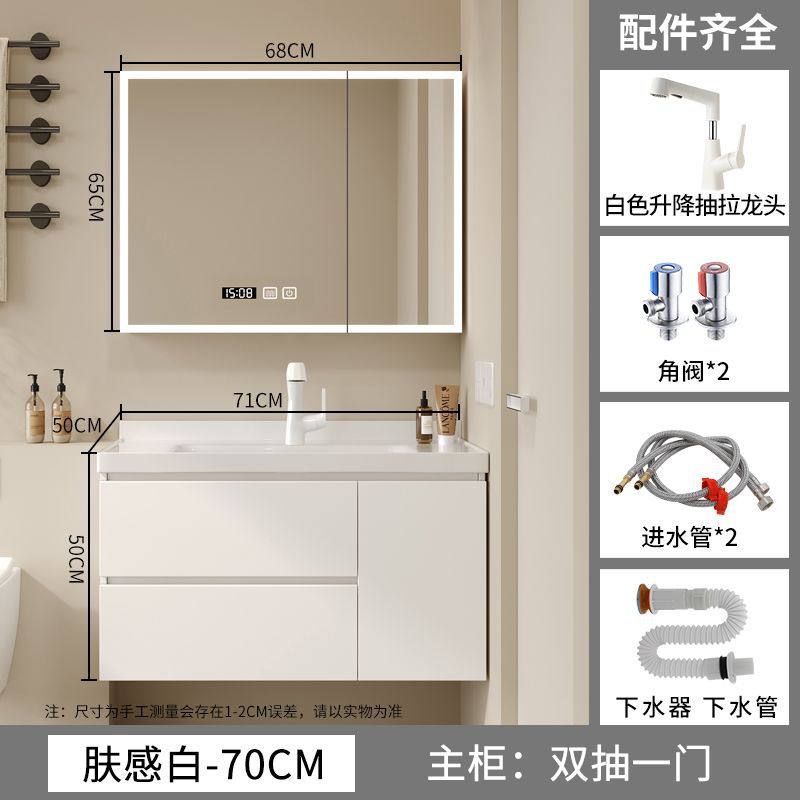 • 문 1개, 서랍 2개 + 리프팅 및 인출식 수도꼭지 + 지능형 발광 거울 캐비닛 - 70가지 스타일