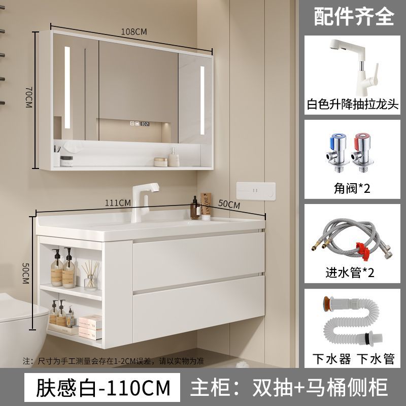 • 대형 더블 드로우 모델 + 리프팅 및 인출식 수도꼭지 + 지능형 야광 거울 캐비닛 - 110 모델