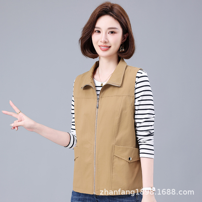 조끼 여성의 짧은 봄과 가을 조끼 2025 새로운 캐주얼 중년 및 노인 어머니 느슨한 플러스 사이즈 조끼 어깨 캐주얼스토어 가기