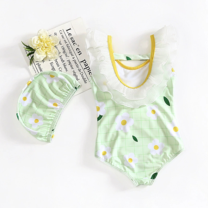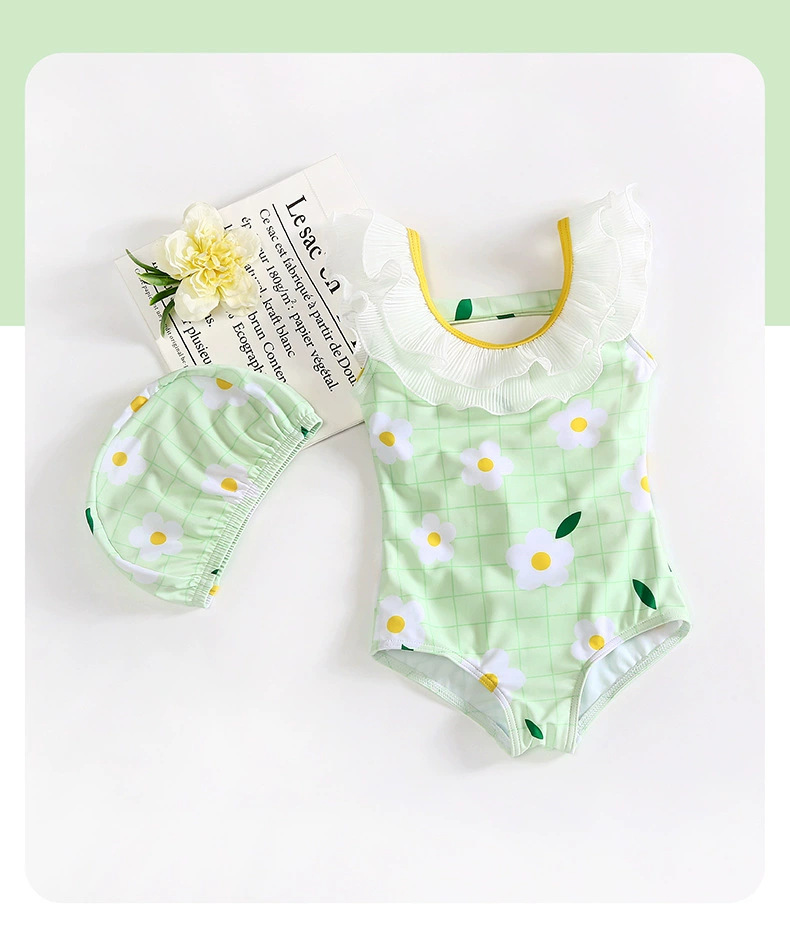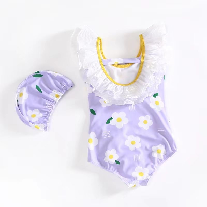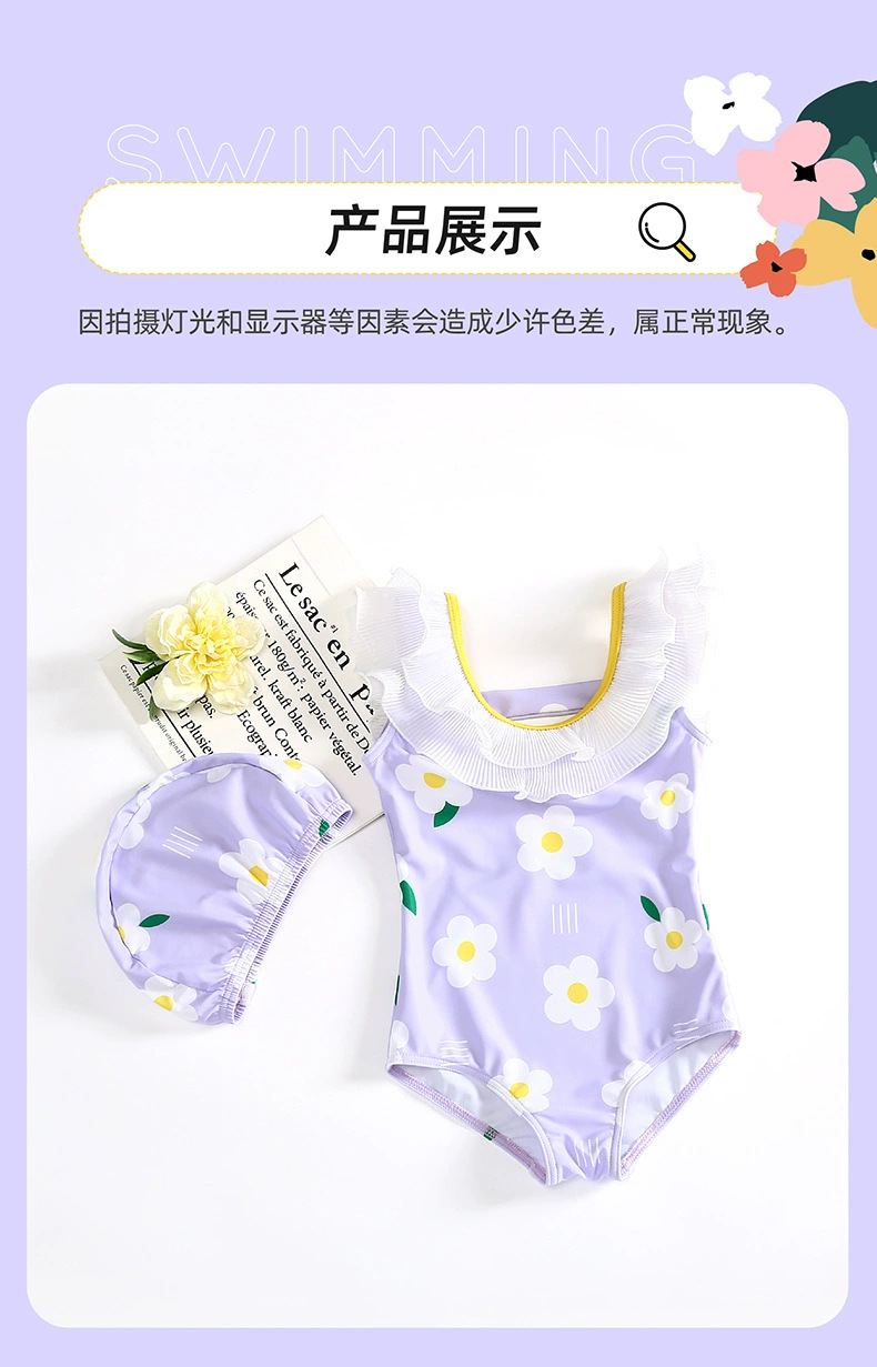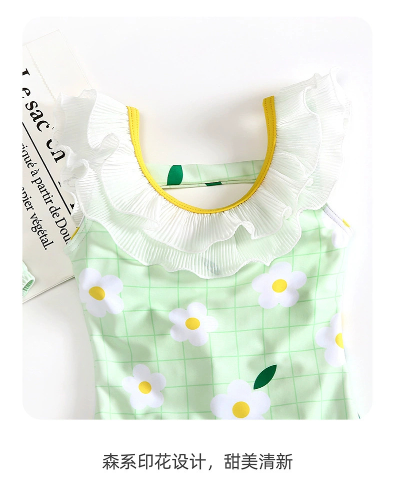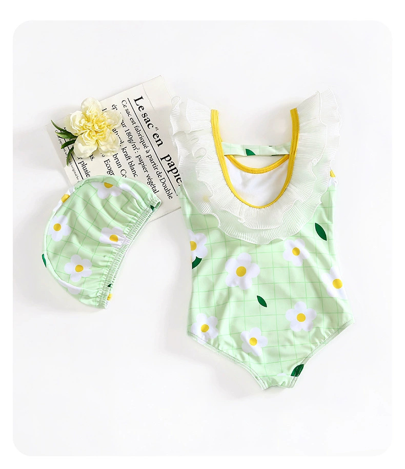 어린이 수영복 소녀 귀여운 2024 새로운 만화 인쇄 삼각형 Leaky Back Little Girl 일본 수영복 도매스토어 가기