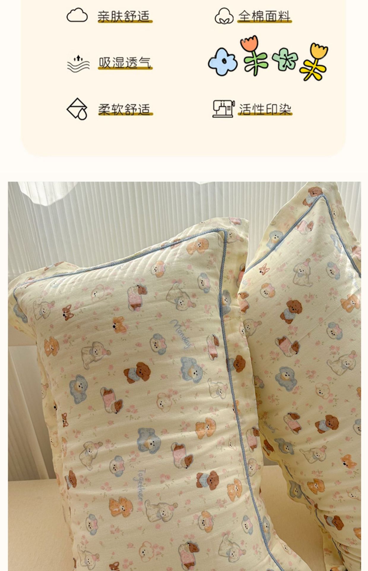 • Diandian Bear [쌍] 면 100%로 피부 친화적이고 부드럽고 편안합니다.