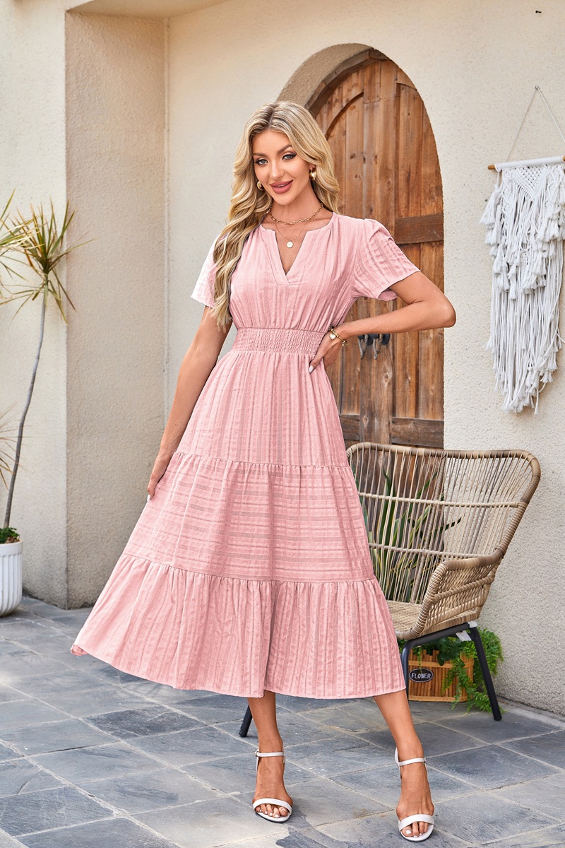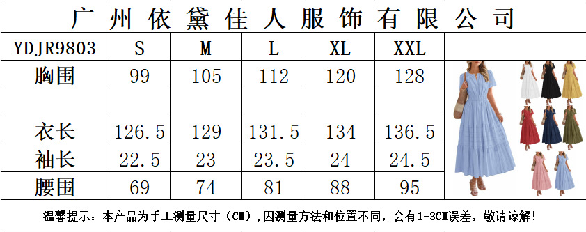 2026 유럽과 미국의 대외 무역 국경 간 여성 의류 아마존 인기 V 넥 플리츠 퍼프 슬리브 대형 반소매 드레스
