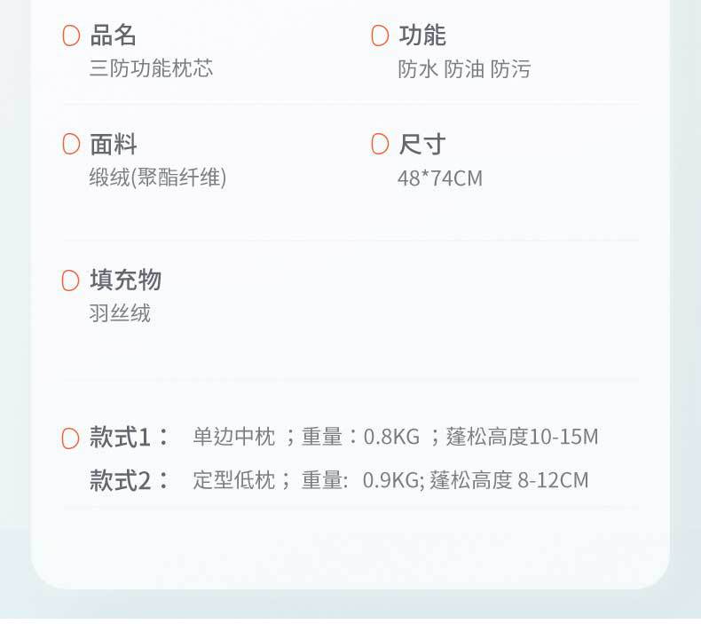 새로운 호텔 베개 핵심 학생 기숙사 단일 베개 방수 오일 방지 파울 깃털 벨벳 3 가지 기능 베개