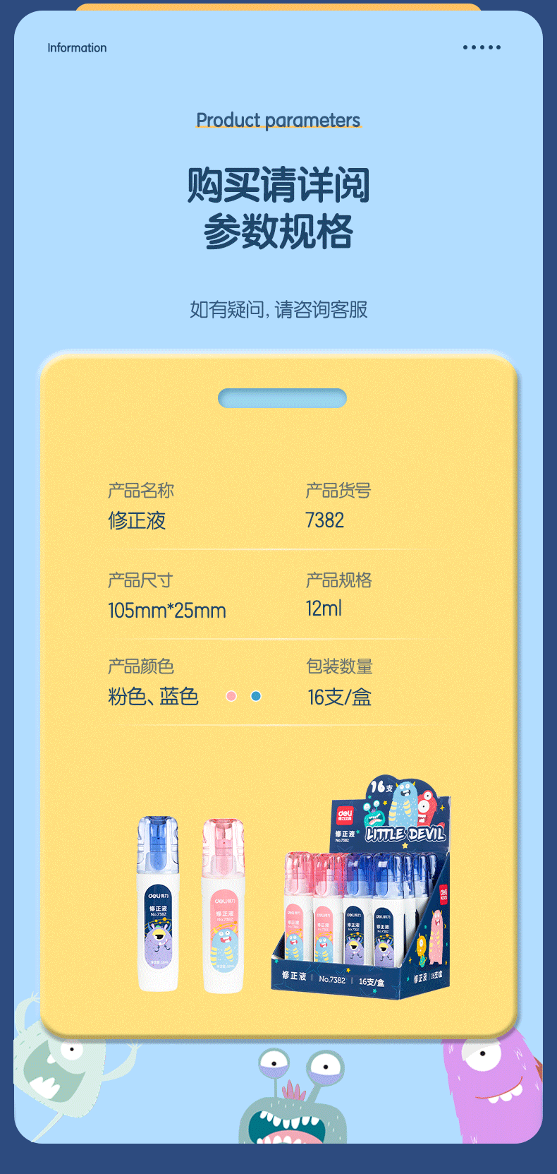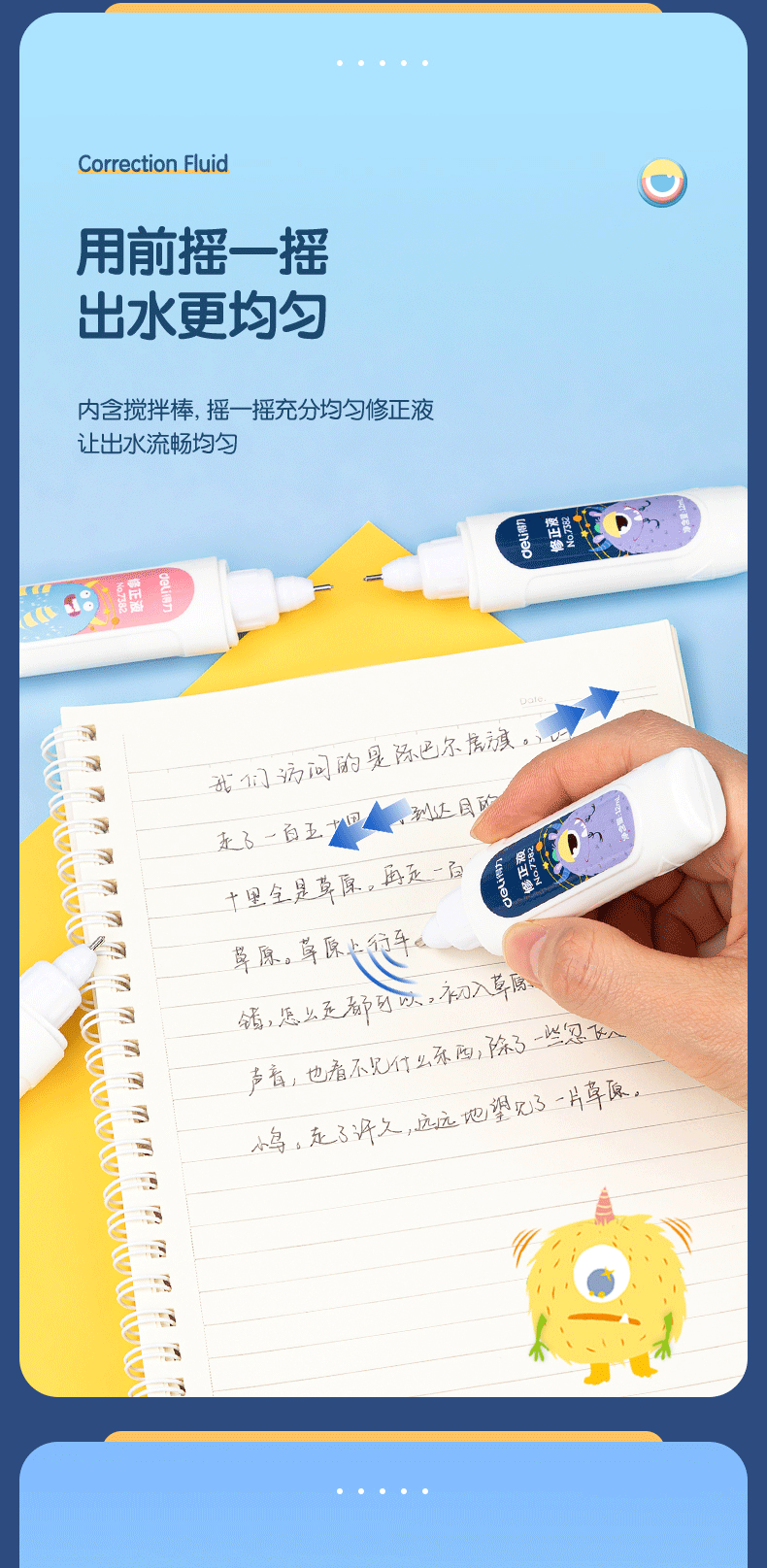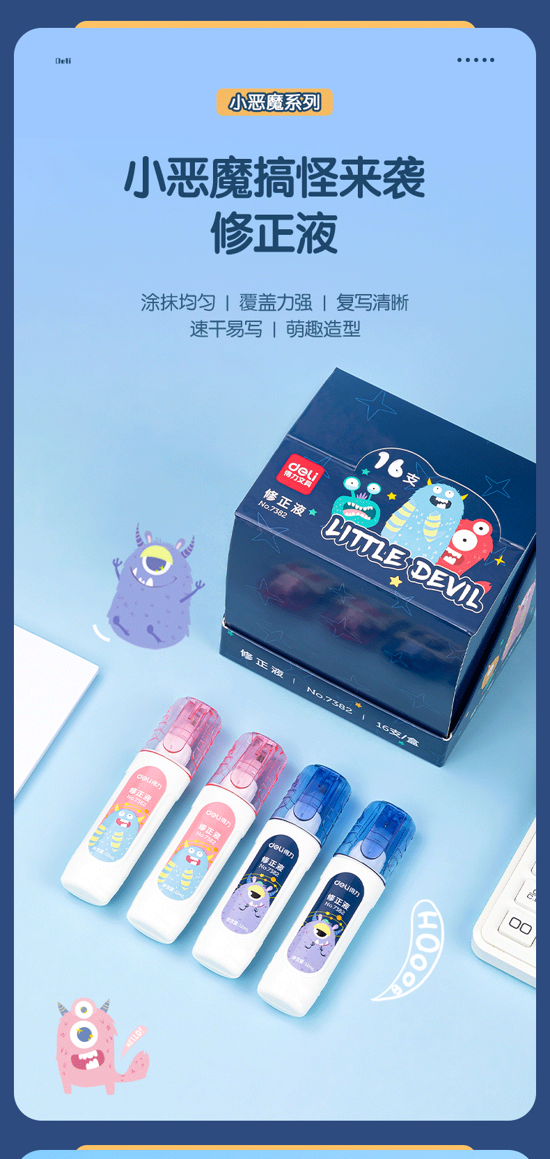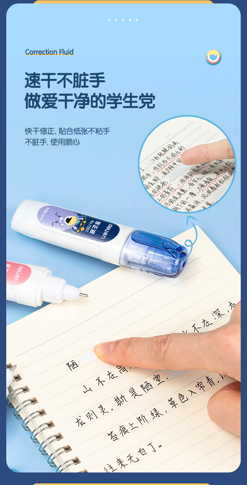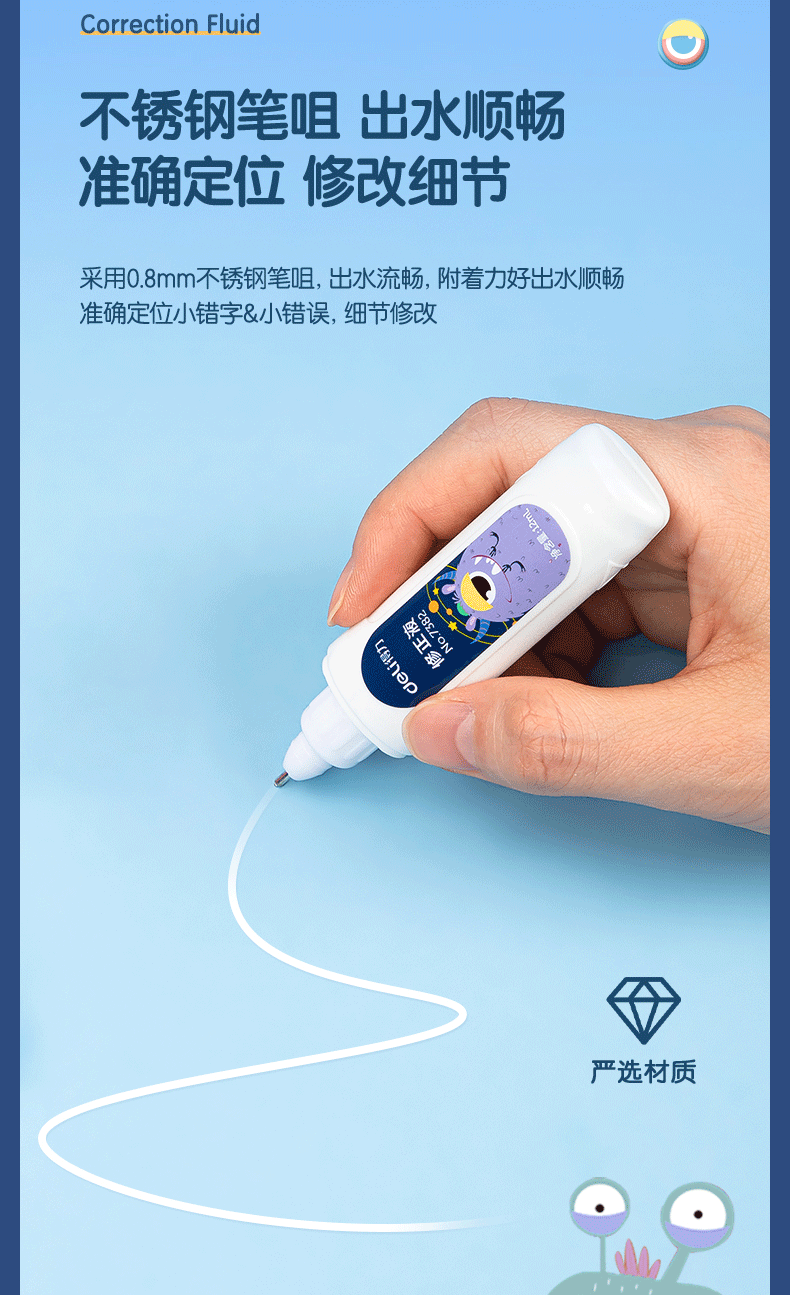 델리 문구 7382 수정 유체 빠른 건조 학생 교정 유체 수정 유체 펜 제거 단어 링 도매