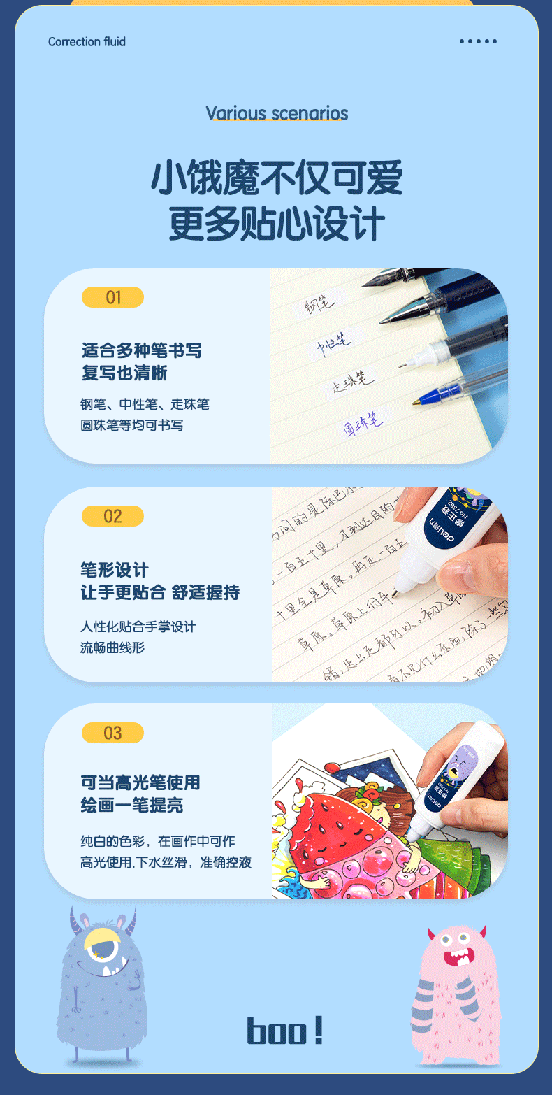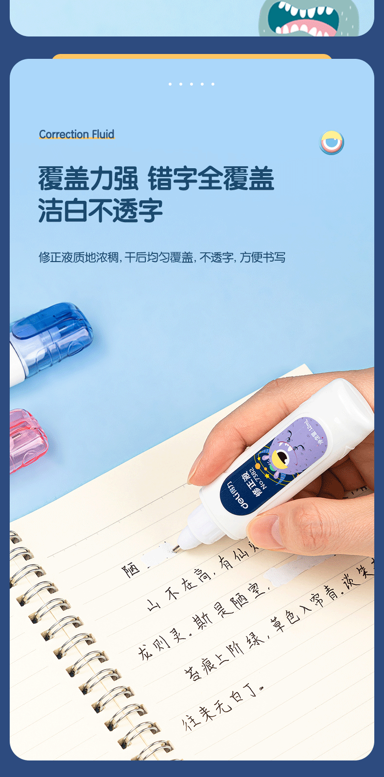 델리 문구 7382 수정 유체 빠른 건조 학생 교정 유체 수정 유체 펜 제거 단어 링 도매스토어 가기