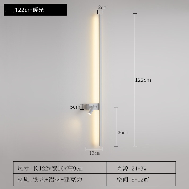 현대 간단한 벽 램프 긴 스트립 스위치 거실 TV 배경 벽 스포트라이트 독서 침실 램프