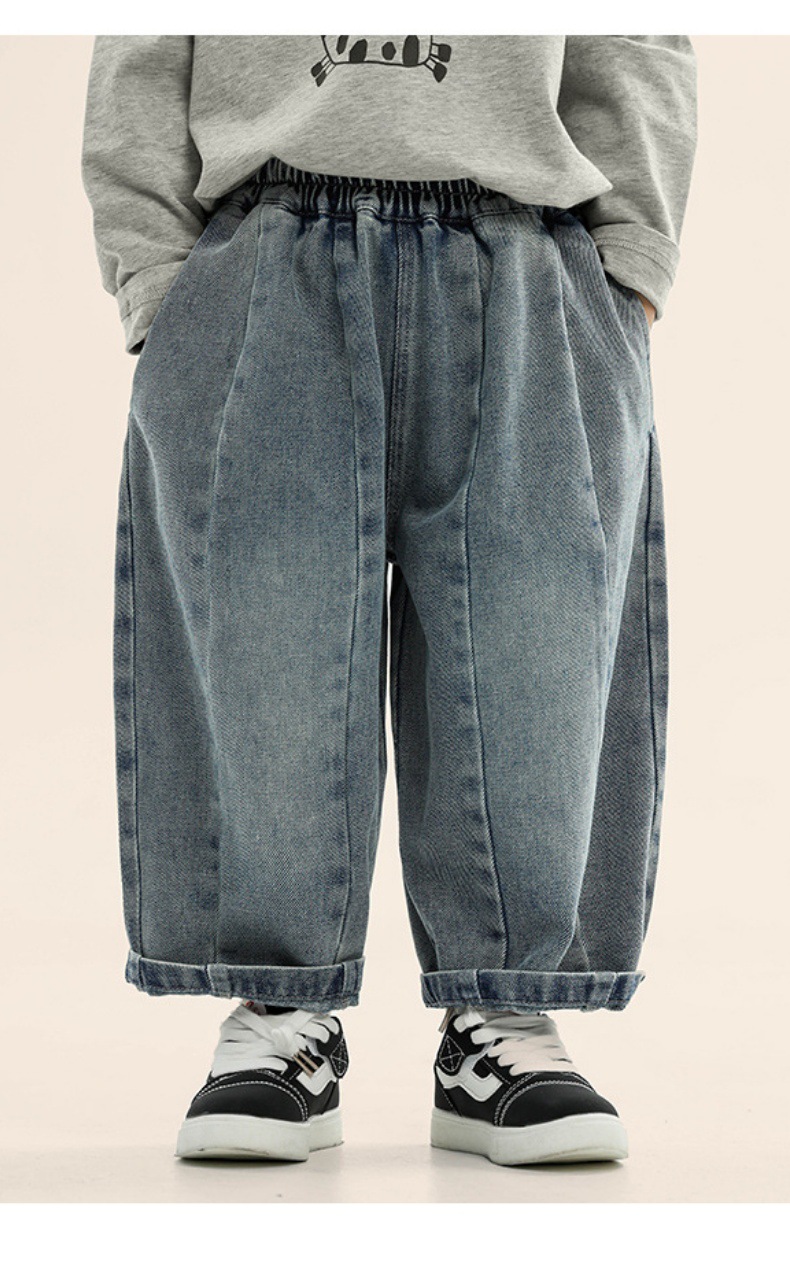창궈 의류 남아 데님 팬츠 봄 신상품 아동 한국 스타일 패치워크 바지 중소형 아동 봄 가을 캐주얼 팬츠