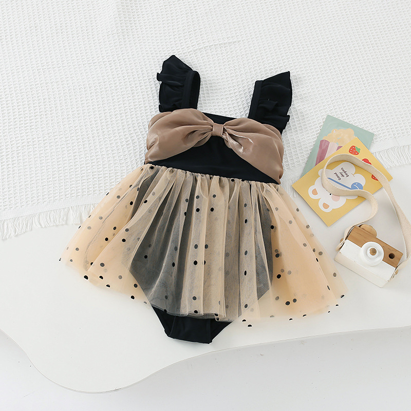 어린이 수영복 요정 원피스 원피스 수영복 해변 온천 메쉬 웨이브 도트 어린이 쇼 서양식 달콤한 거즈 원피스
