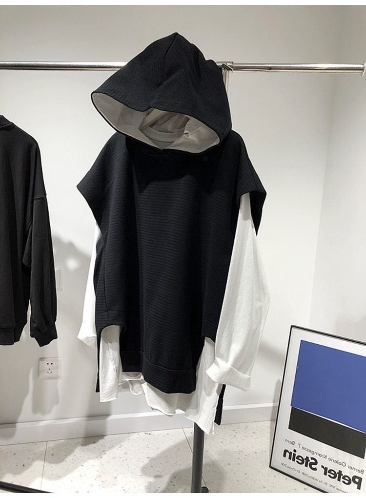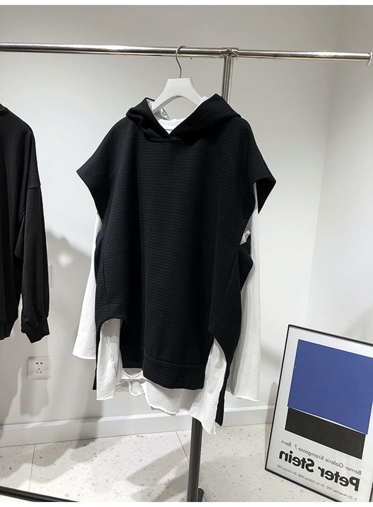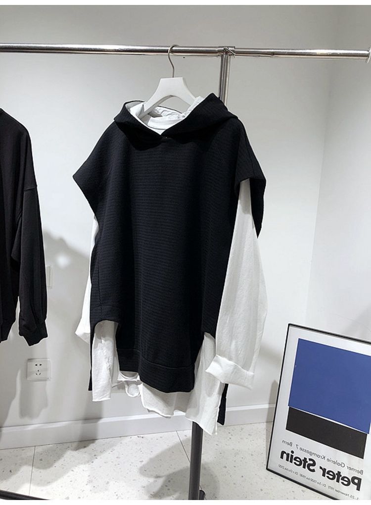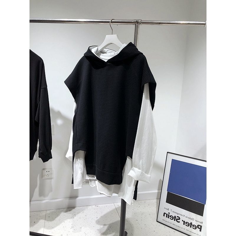통통녀 초대형 300kg 조커 민소매 느슨한 후드 스웨터 조끼 클립 여성용 가을 조끼 재킷 2