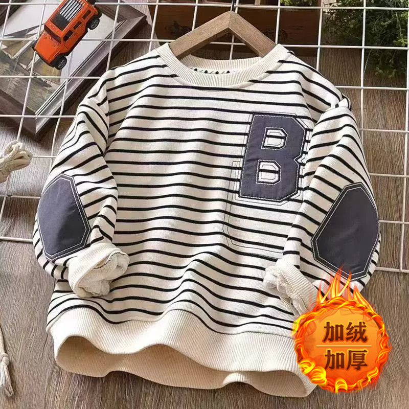소년 운동복 2025 년 봄과 가을 새로운 어린이 가을 긴 소매 티셔츠 줄무늬 옷 남자의 새로운 스타일스토어 가기