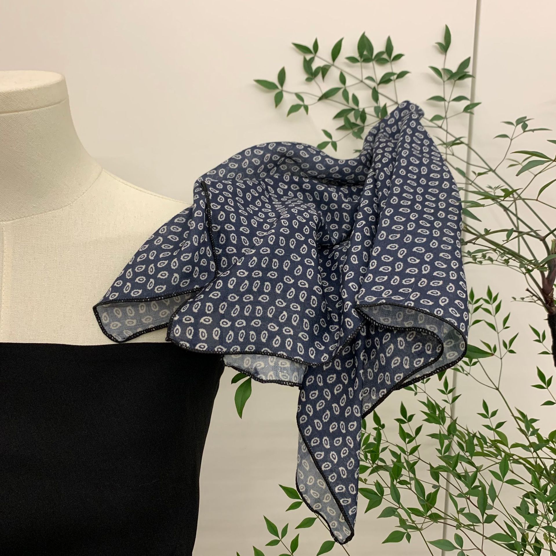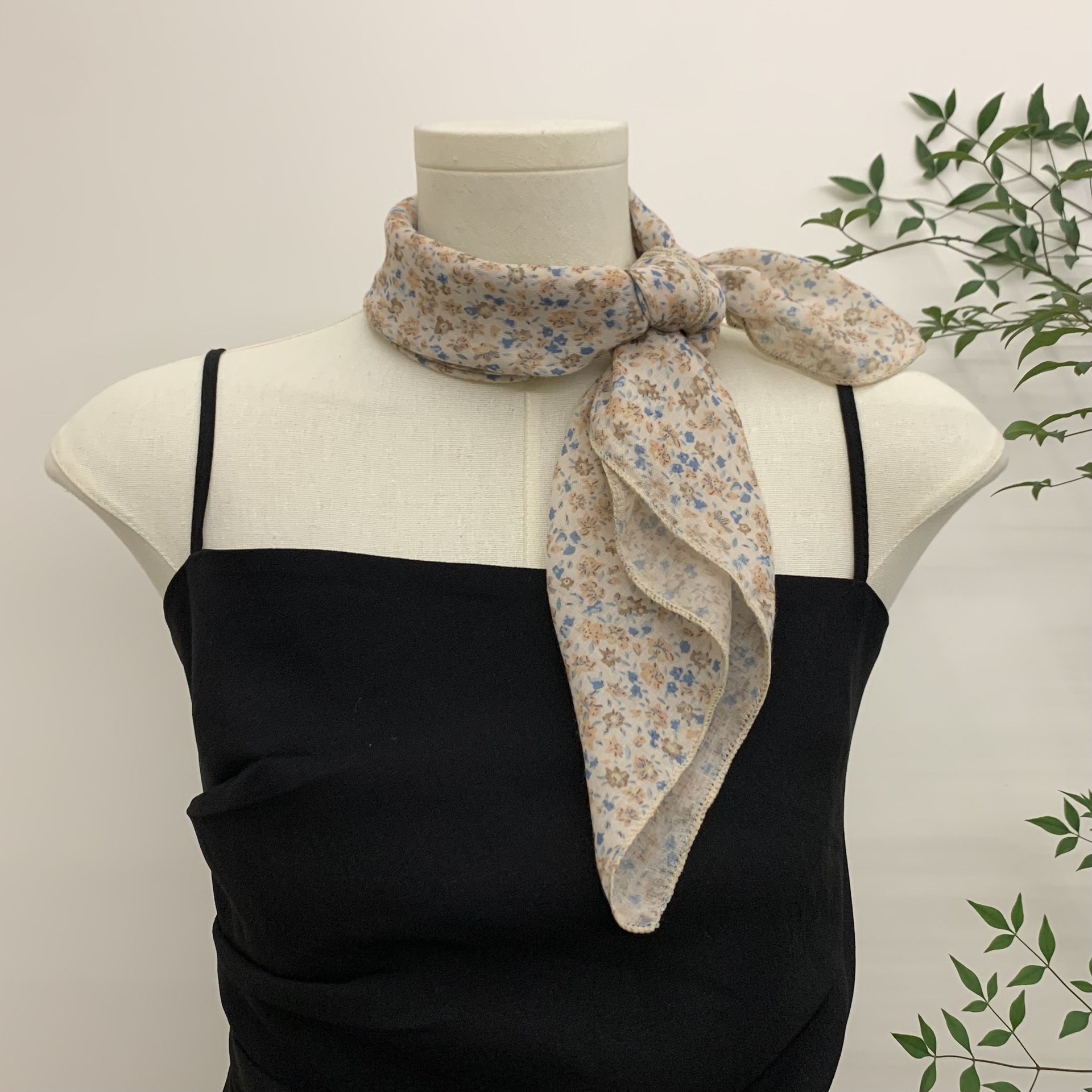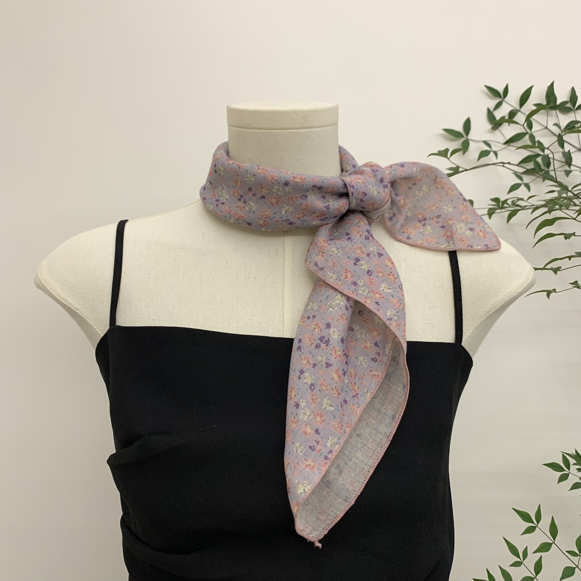 자기 유지 부드러운 사각형 스카프 꽃은면과 린넨 스카프 장식 머리 스카프 문학 복고풍 작은 신선한 허리 꽃스토어 가기