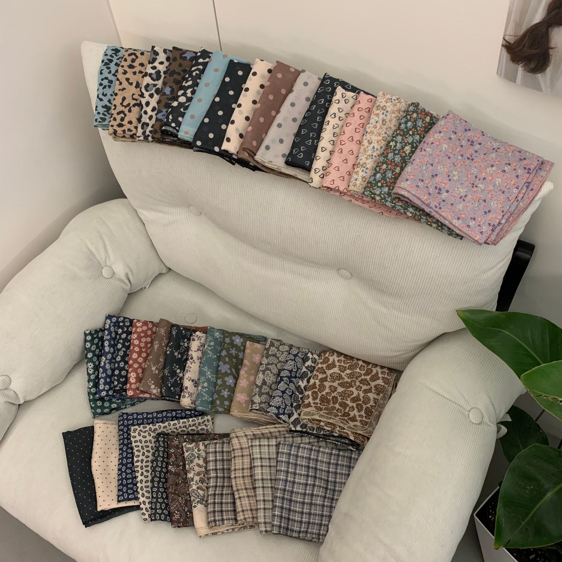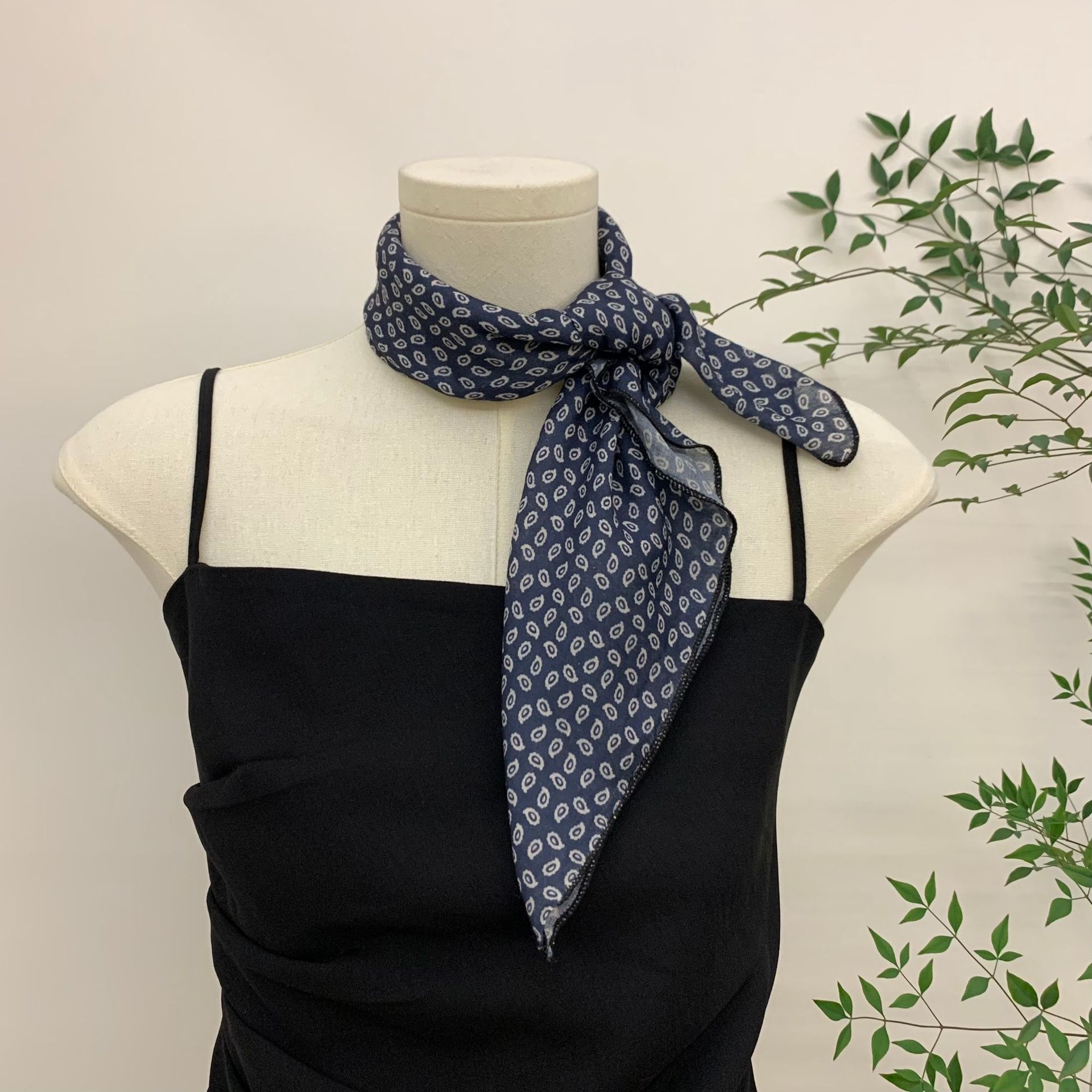 자기 유지 부드러운 사각형 스카프 꽃은면과 린넨 스카프 장식 머리 스카프 문학 복고풍 작은 신선한 허리 꽃