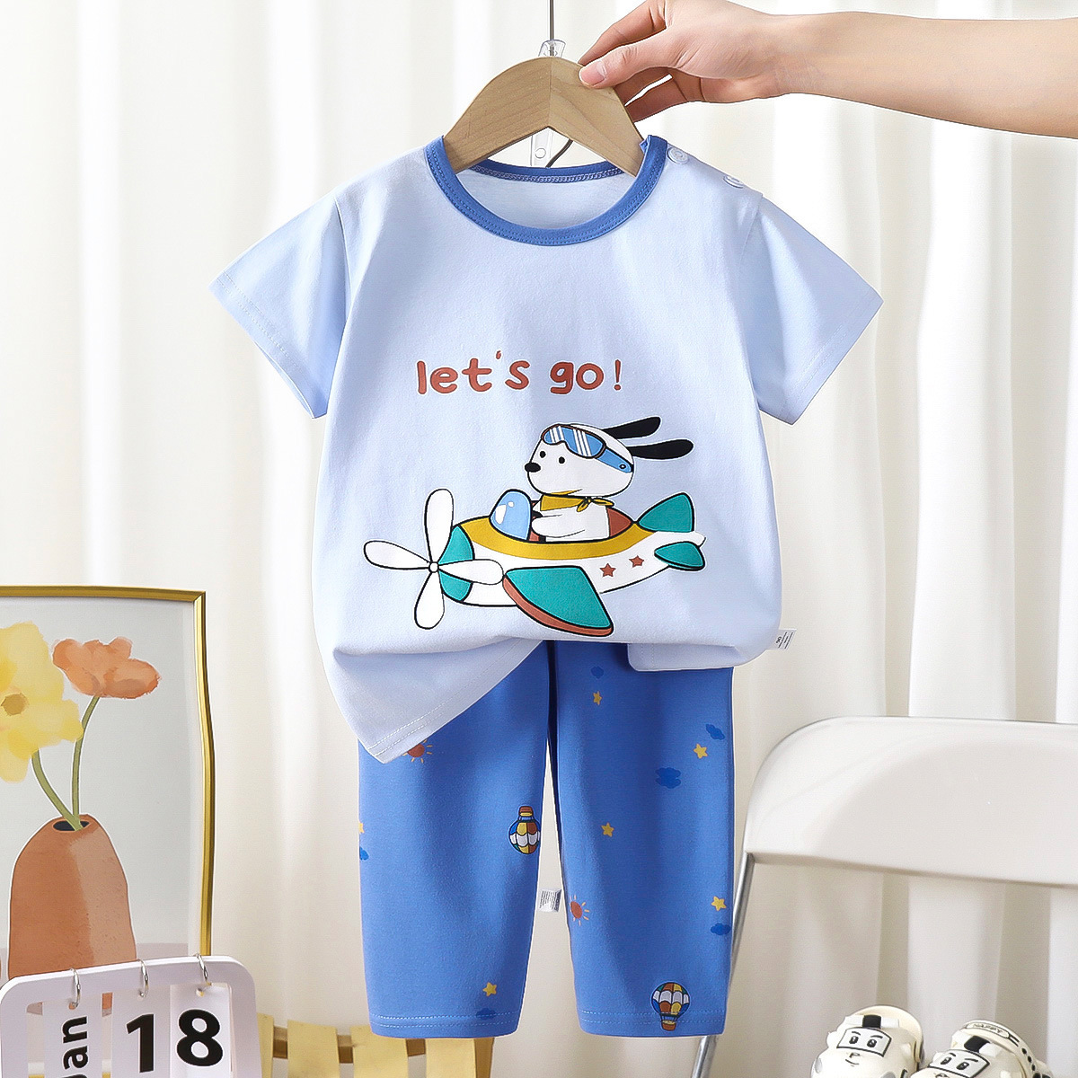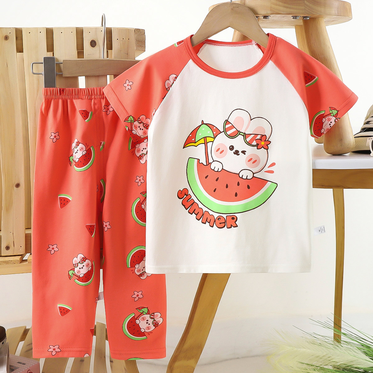 어린이 새로운 짧은 소매 바지 코튼 세트 소년 소녀 잠옷 베이비 에어컨 의류 여름 홈 아동복 도매