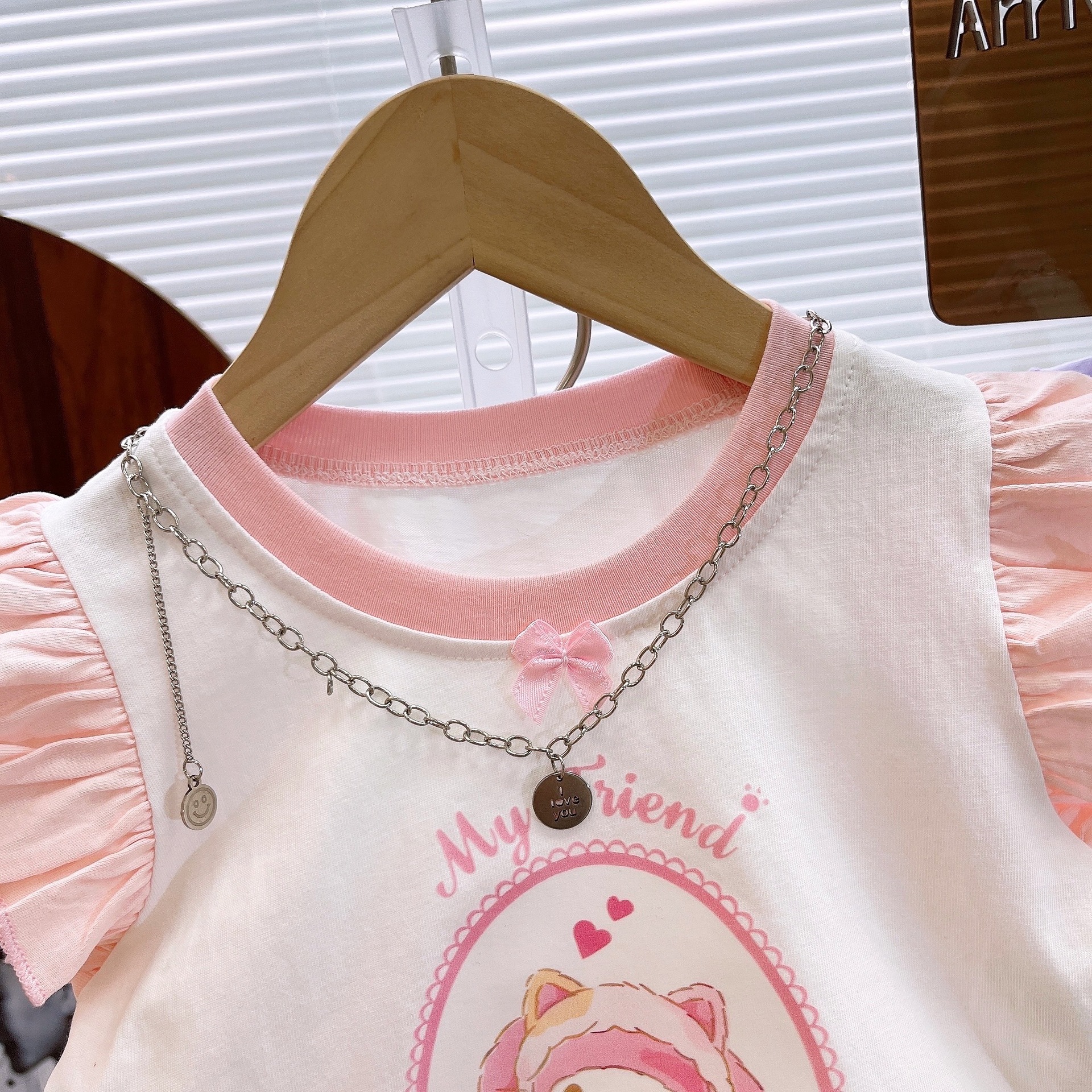 2025 여름 어린이 의류 새로운 소녀 귀여운 세트 폴카 도트 블루머 만화 호박 바지 조끼 세트 패션