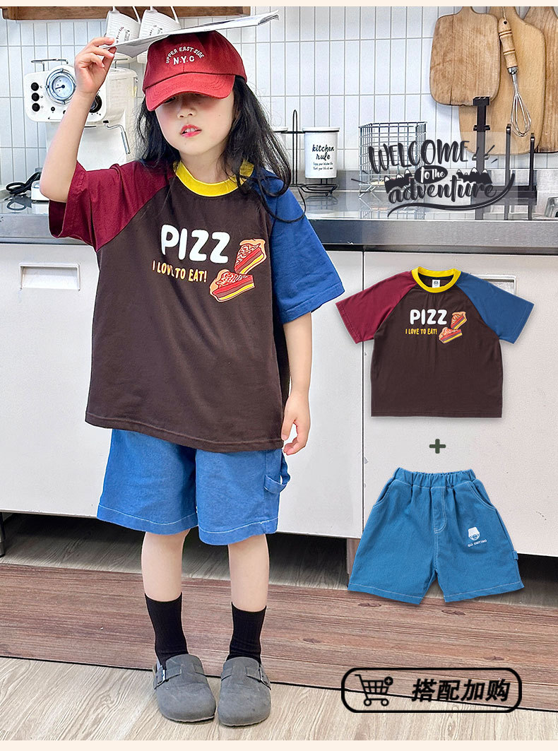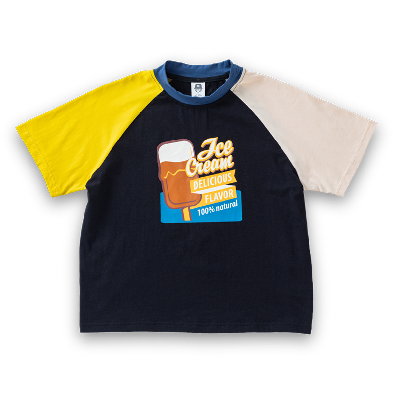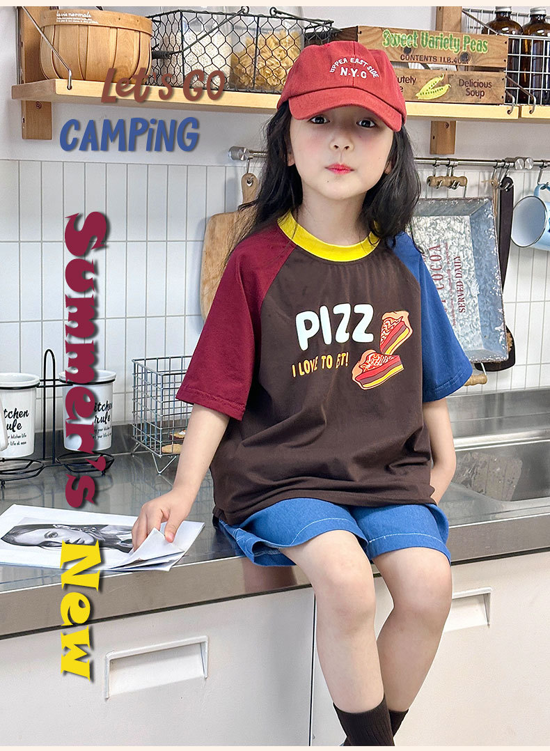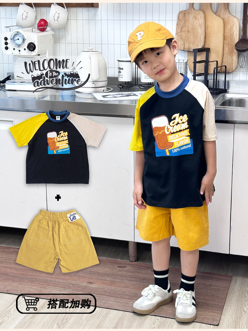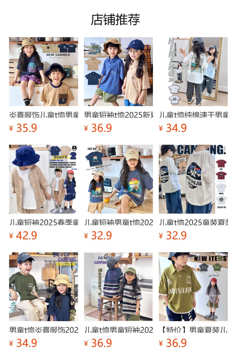소년 티셔츠 2025 새로운 여름 어린이 의류 순수 면화 어린이 반팔 중 큰 어린이 색상 일치 어깨 넓은 느슨한 유행 옷스토어 가기