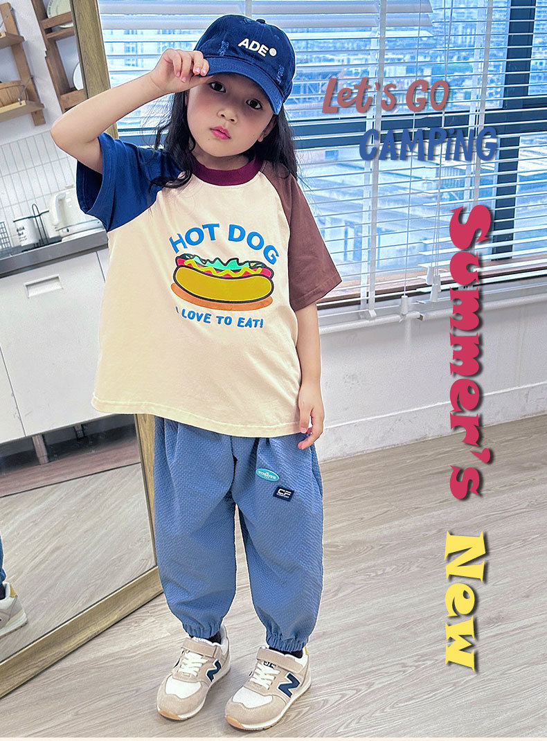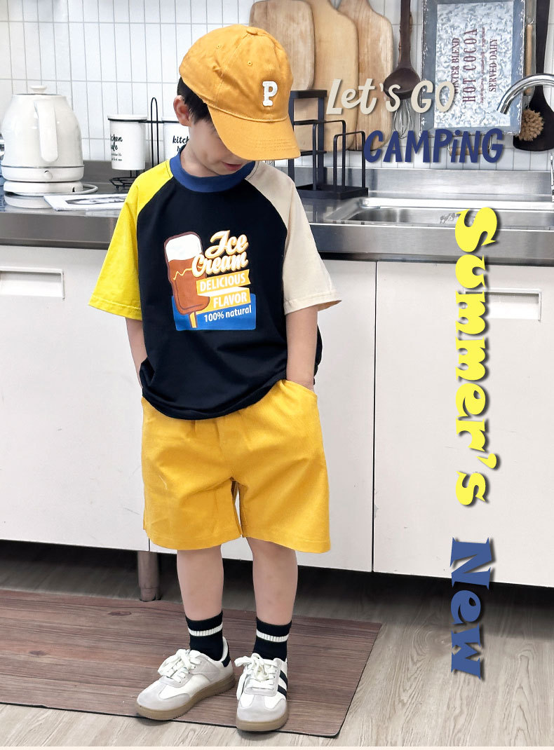 소년 티셔츠 2025 새로운 여름 어린이 의류 순수 면화 어린이 반팔 중 큰 어린이 색상 일치 어깨 넓은 느슨한 유행 옷