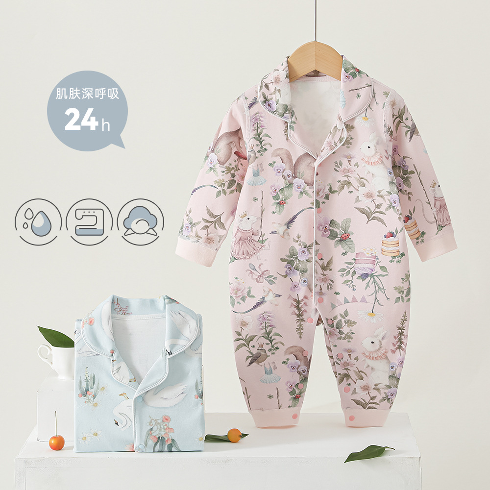 아기의 한 부분 잠옷 소녀의 잠옷 긴팔 한 부분 가을 옷 어린이 순면 카약 등반 옷 봄 옷스토어 가기