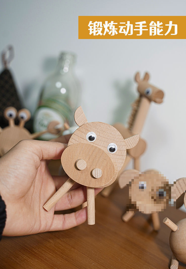 유치원 DIY 천연 수제 동물 소재 가방 어린이 창조적 인 3 차원 나무 기둥 로그 분기
