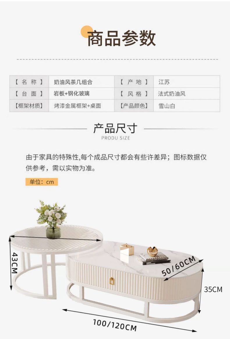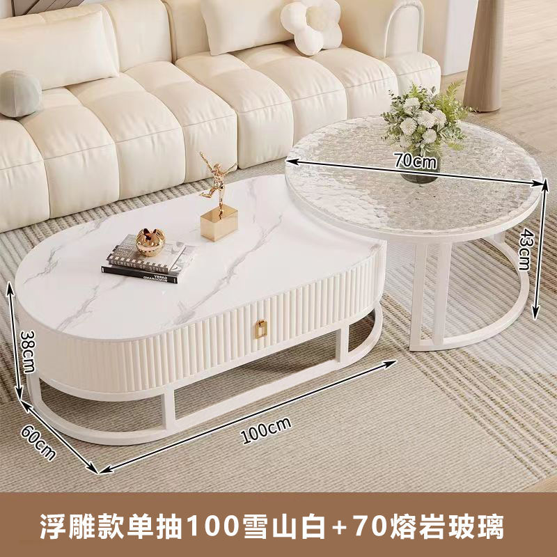 커피 테이블 가정용 거실 간단한 현대 록 보드 차 테이블 유리 차 테이블 라이트 럭셔리 작은 아파트 프랑스 스타일 인터넷 유명 크림 스타일