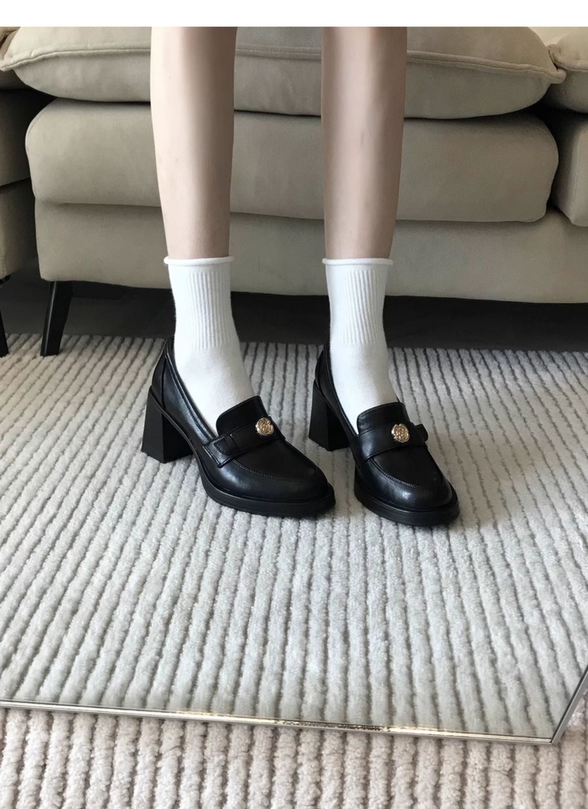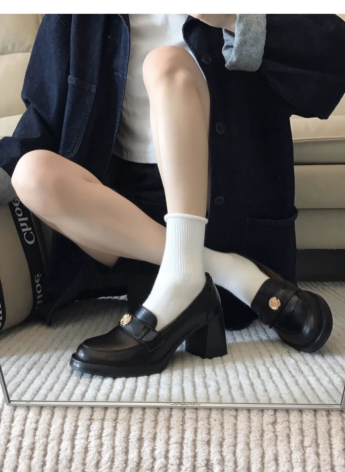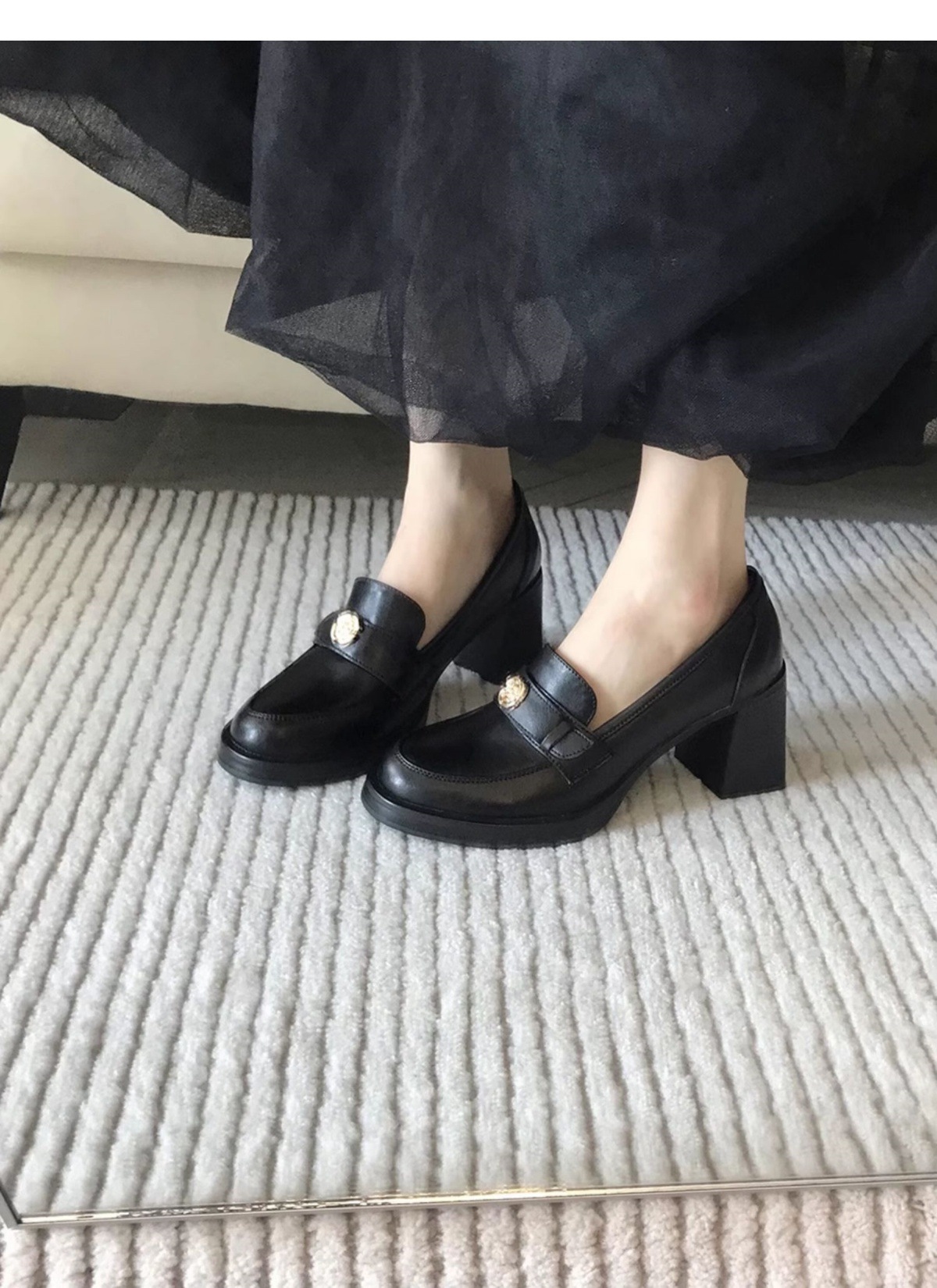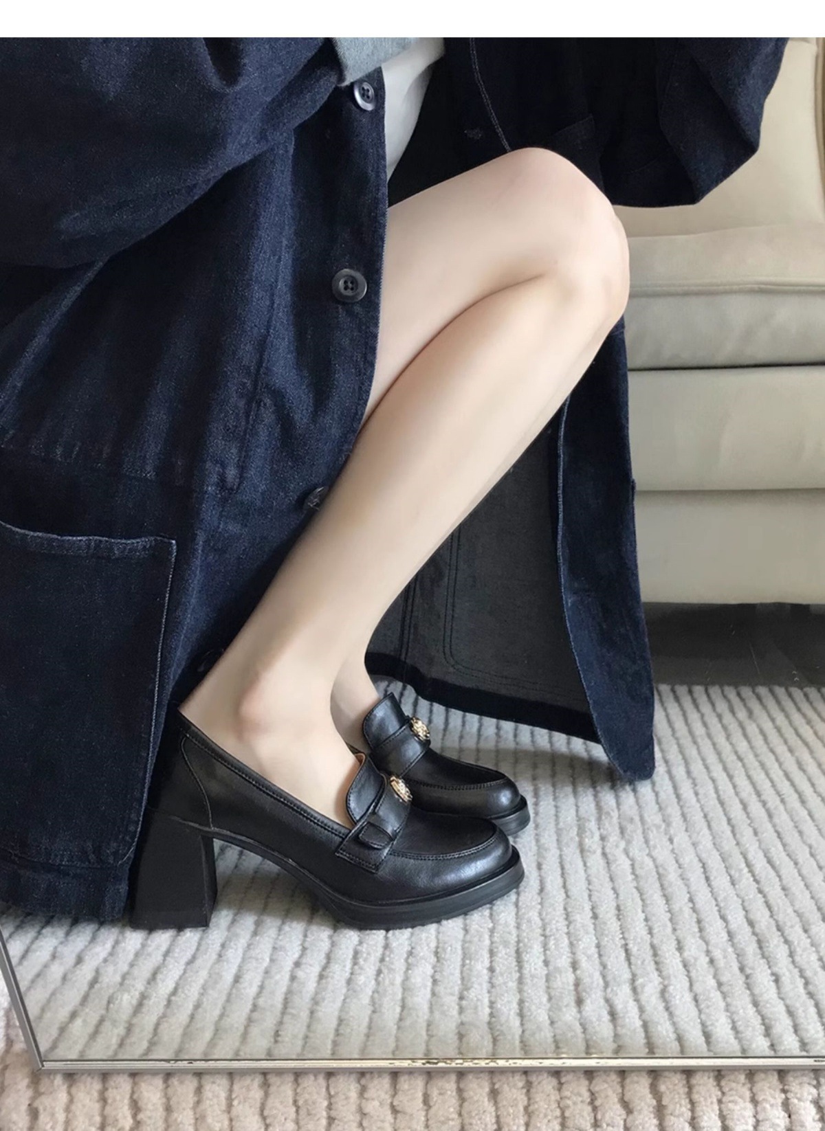 홍콩 하이 엔드 동백 로퍼 여성 2025 봄과 가을 프랑스 청키 힐 블랙 하이힐 영국 스타일 가죽 신발스토어 가기