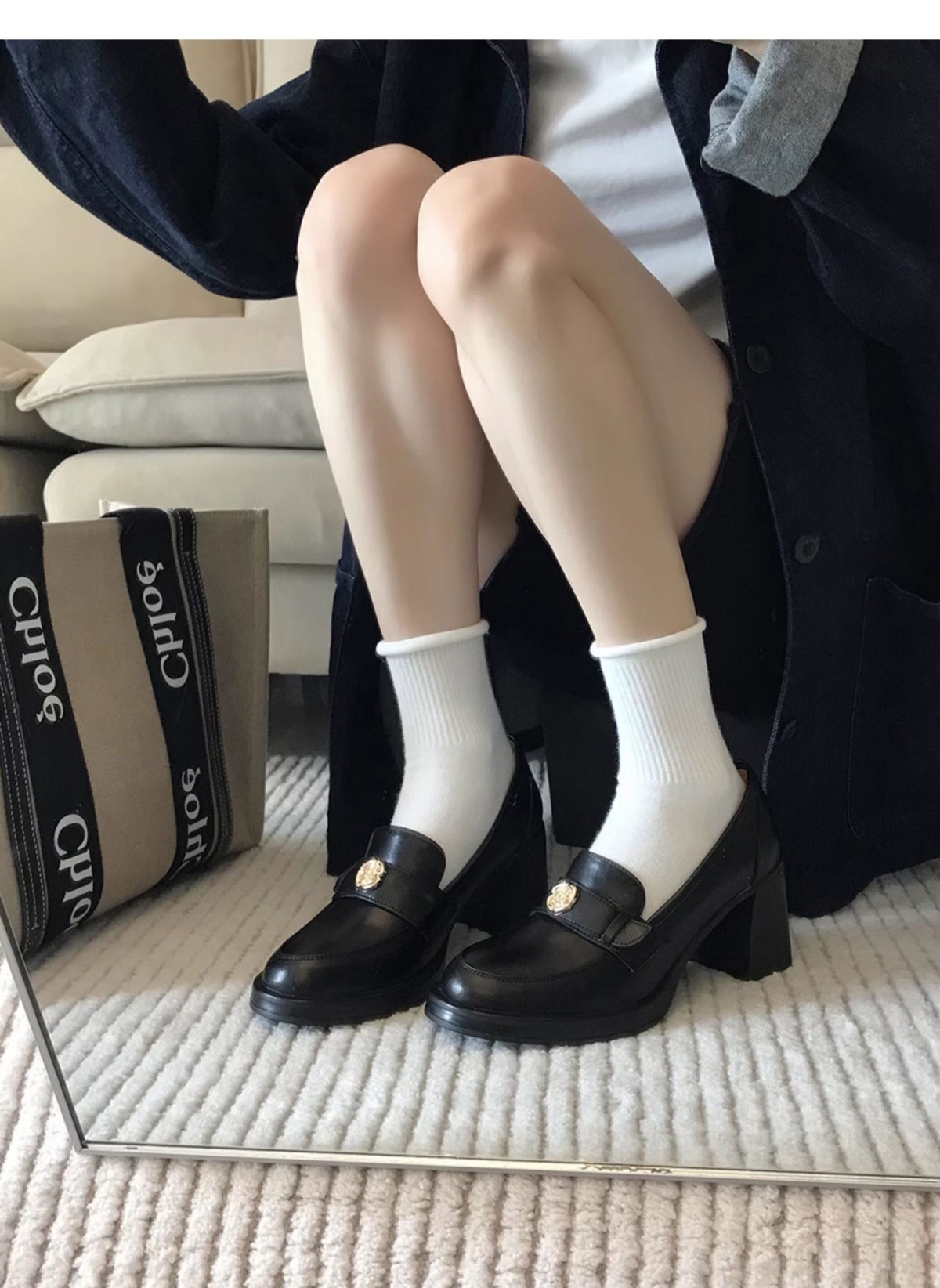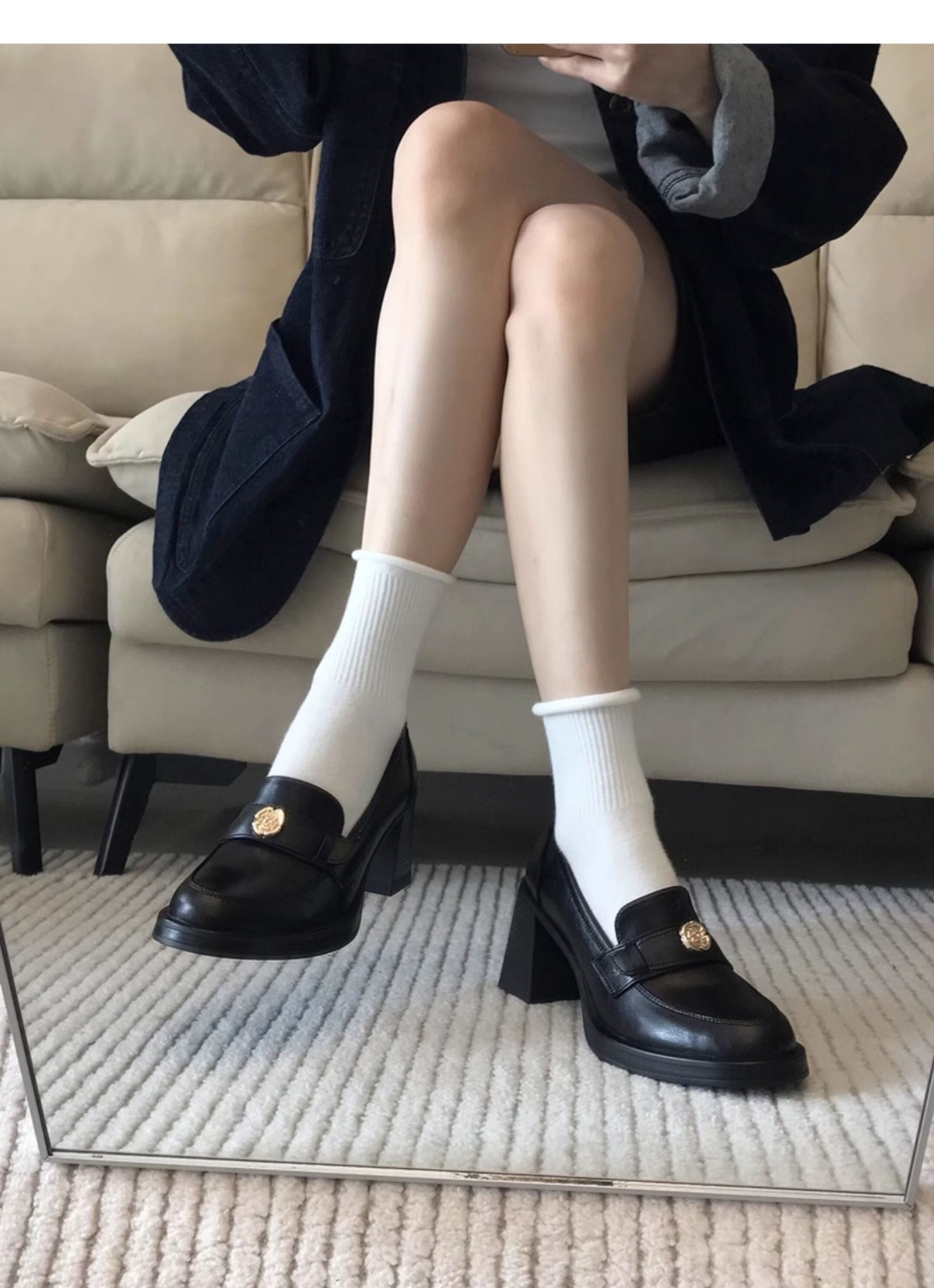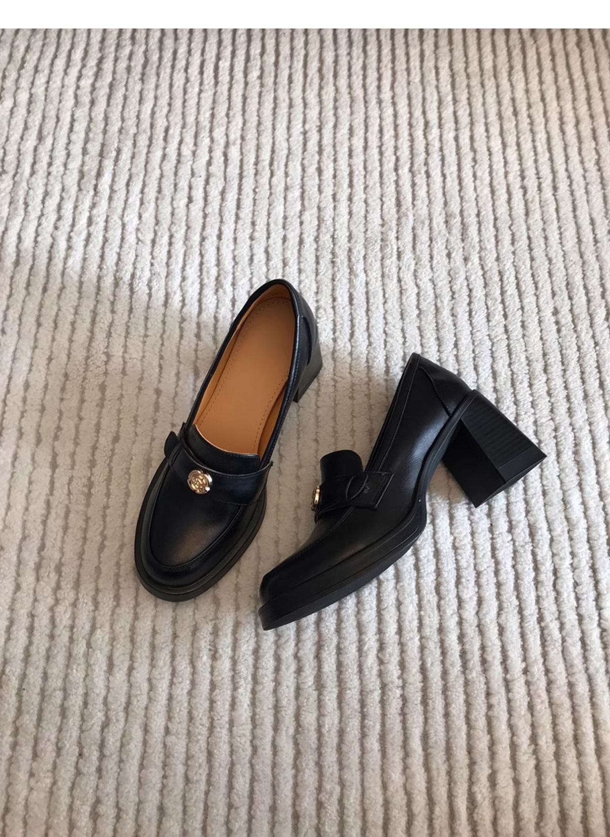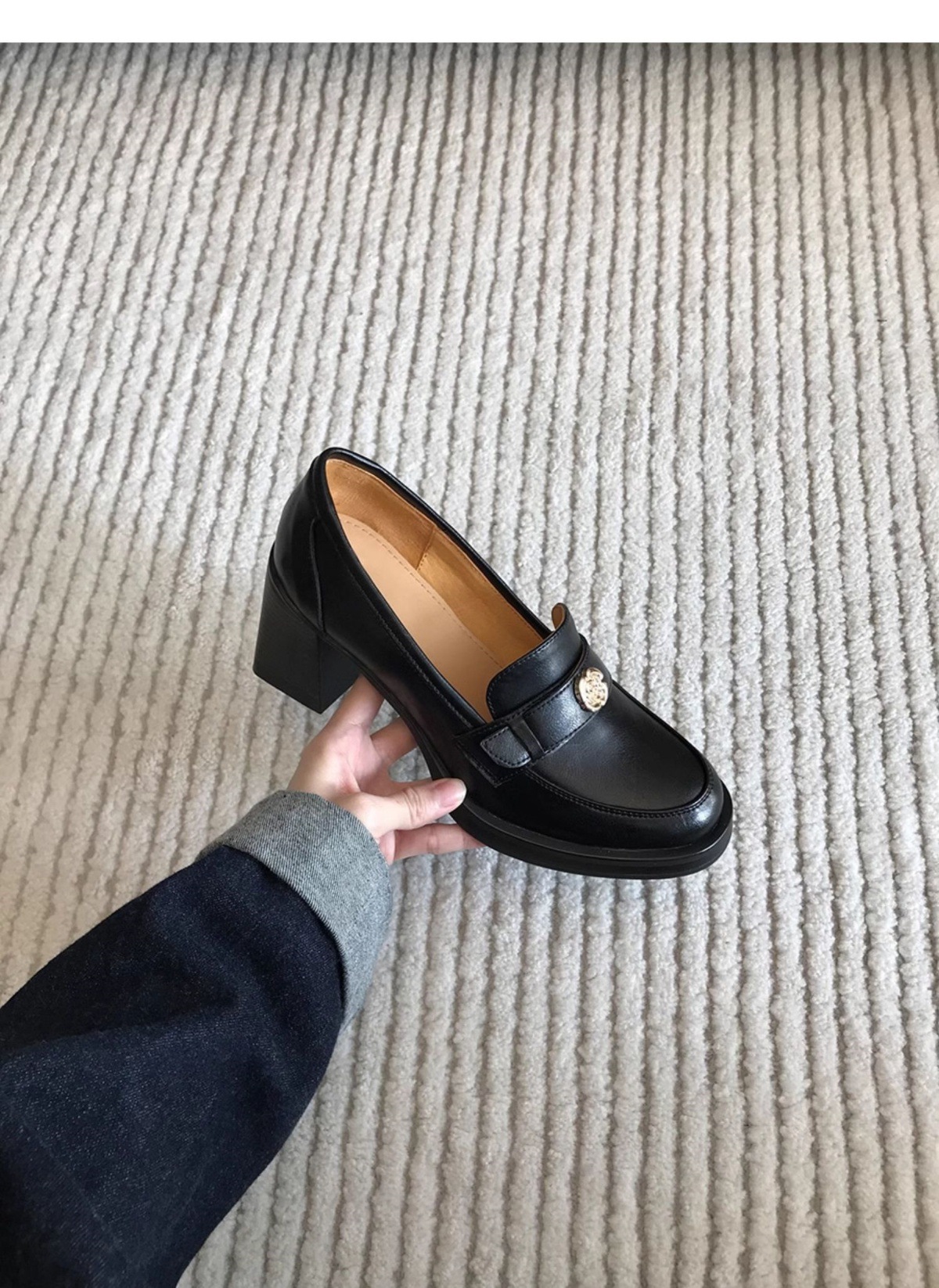 홍콩 하이 엔드 동백 로퍼 여성 2025 봄과 가을 프랑스 청키 힐 블랙 하이힐 영국 스타일 가죽 신발스토어 가기