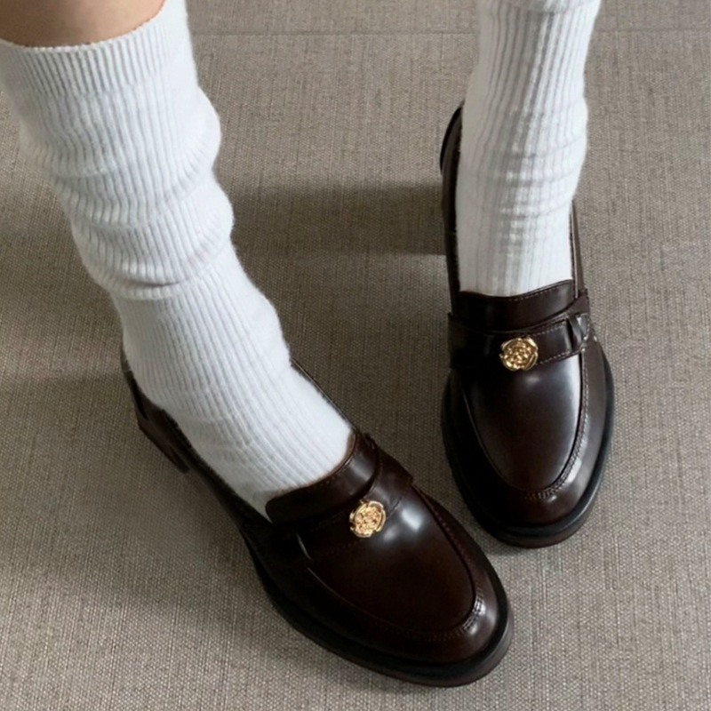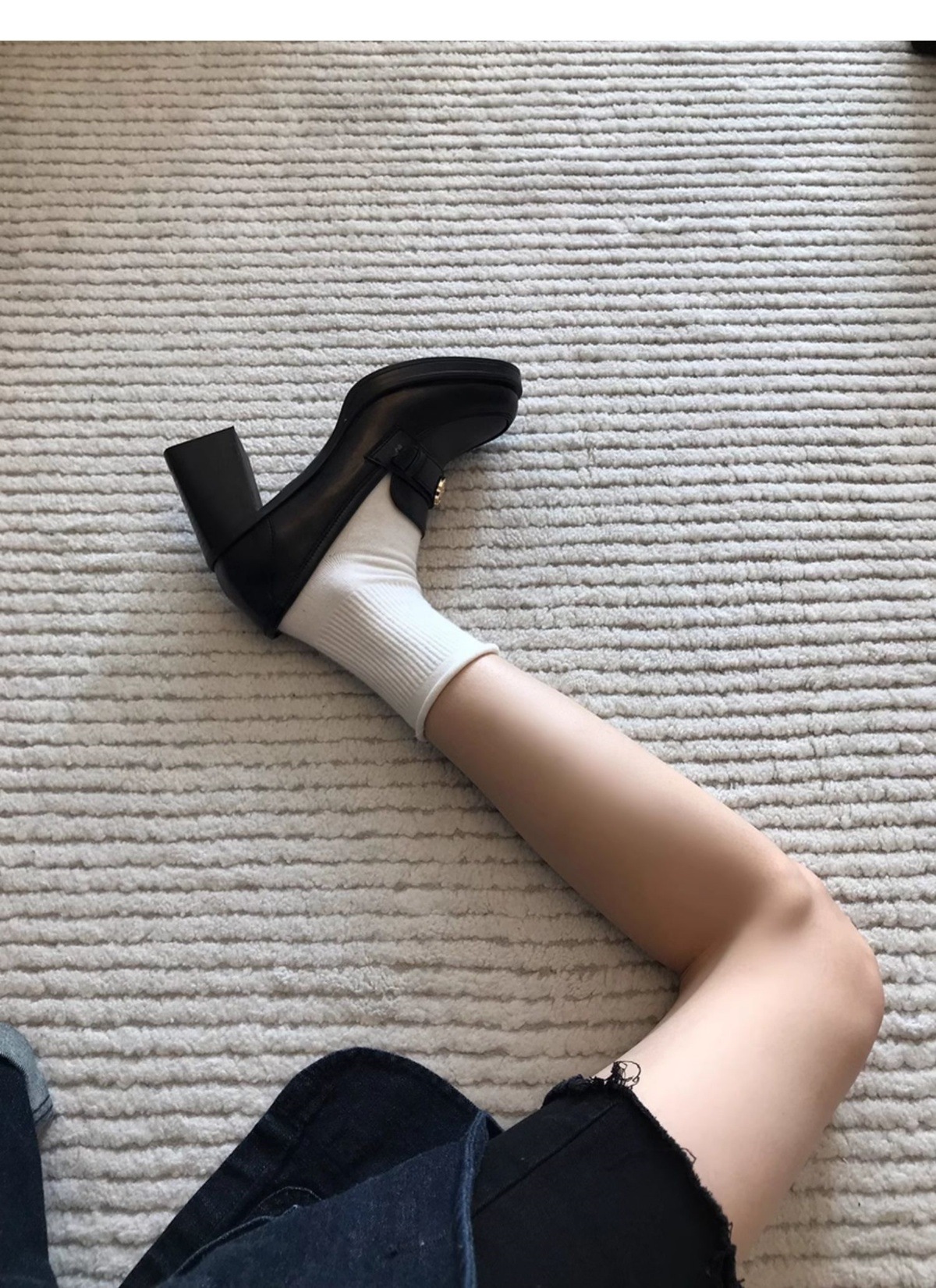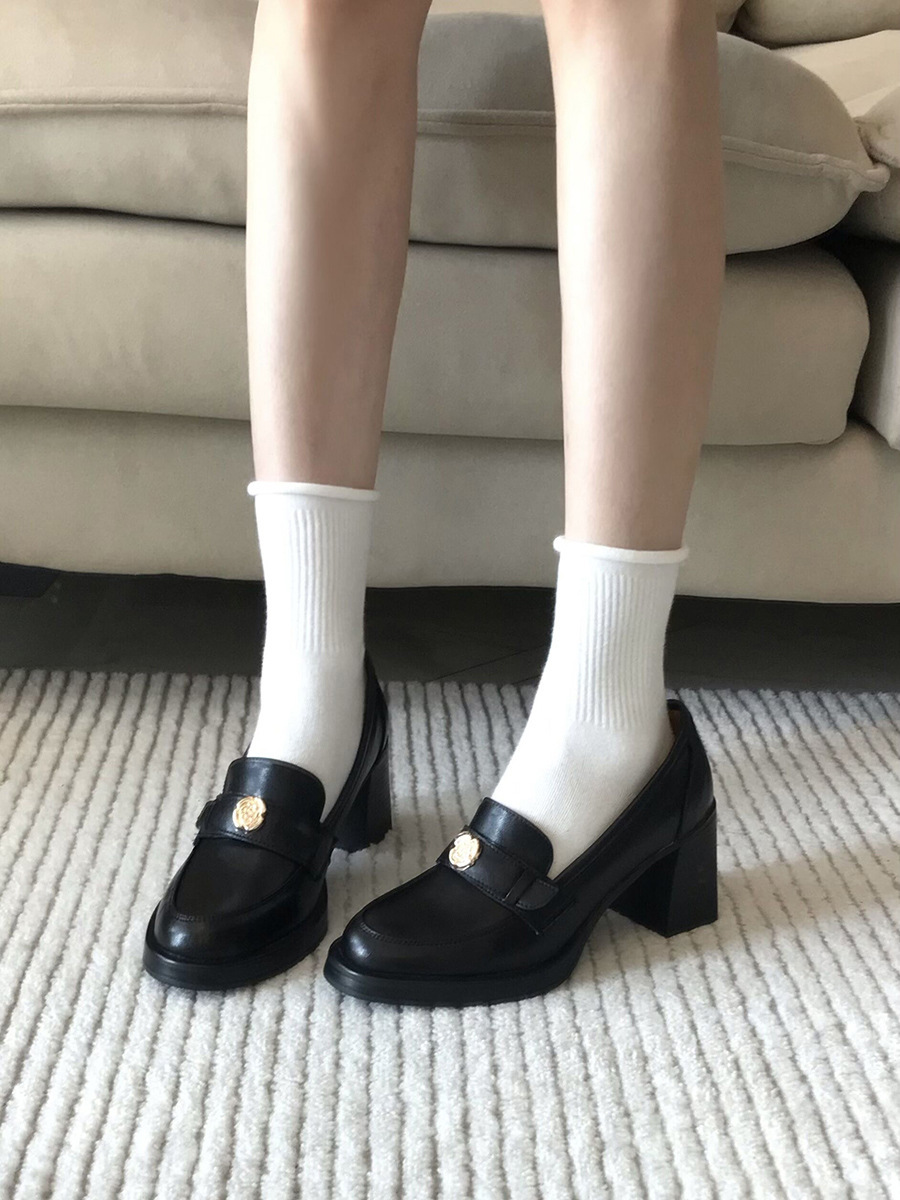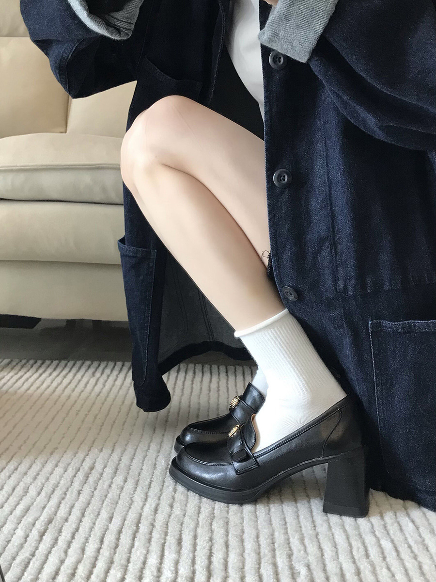 홍콩 하이 엔드 동백 로퍼 여성 2025 봄과 가을 프랑스 청키 힐 블랙 하이힐 영국 스타일 가죽 신발스토어 가기